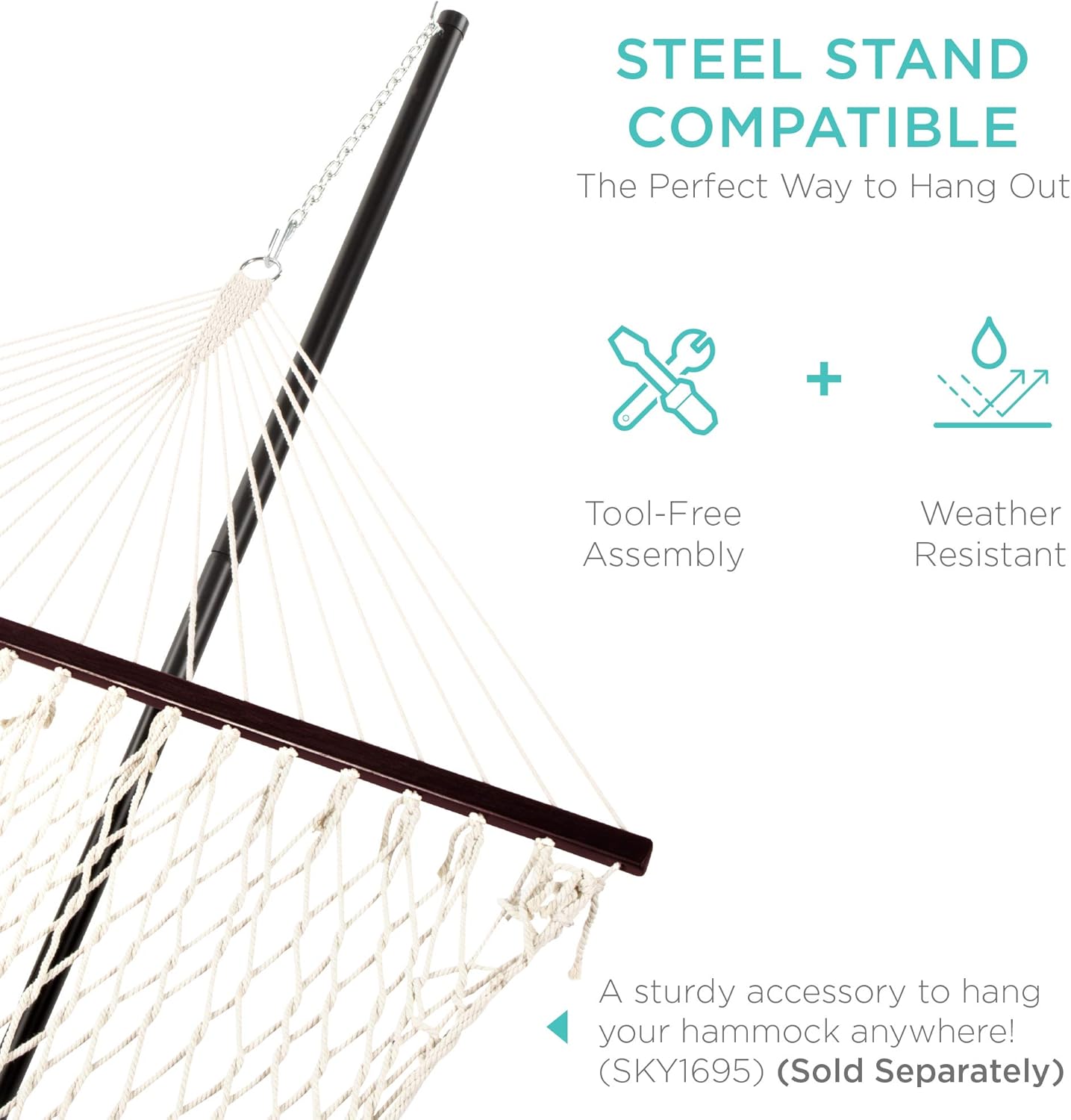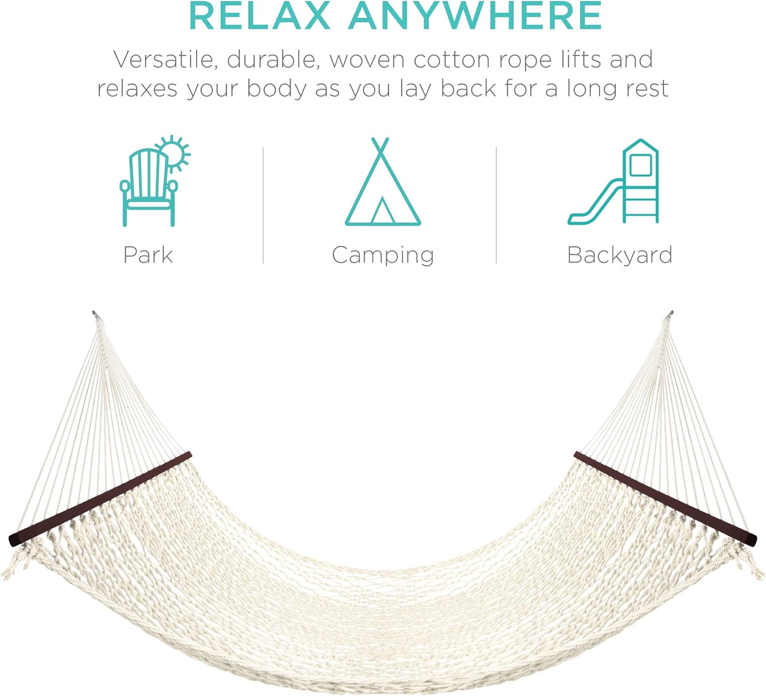 Best Choice Products 2-Person Double Hammock, Outdoor Woven Cotton Rope Hammocks for Backyard, Patio w/Spreader Bars, Carrying Case, 450lb Weight Capacity