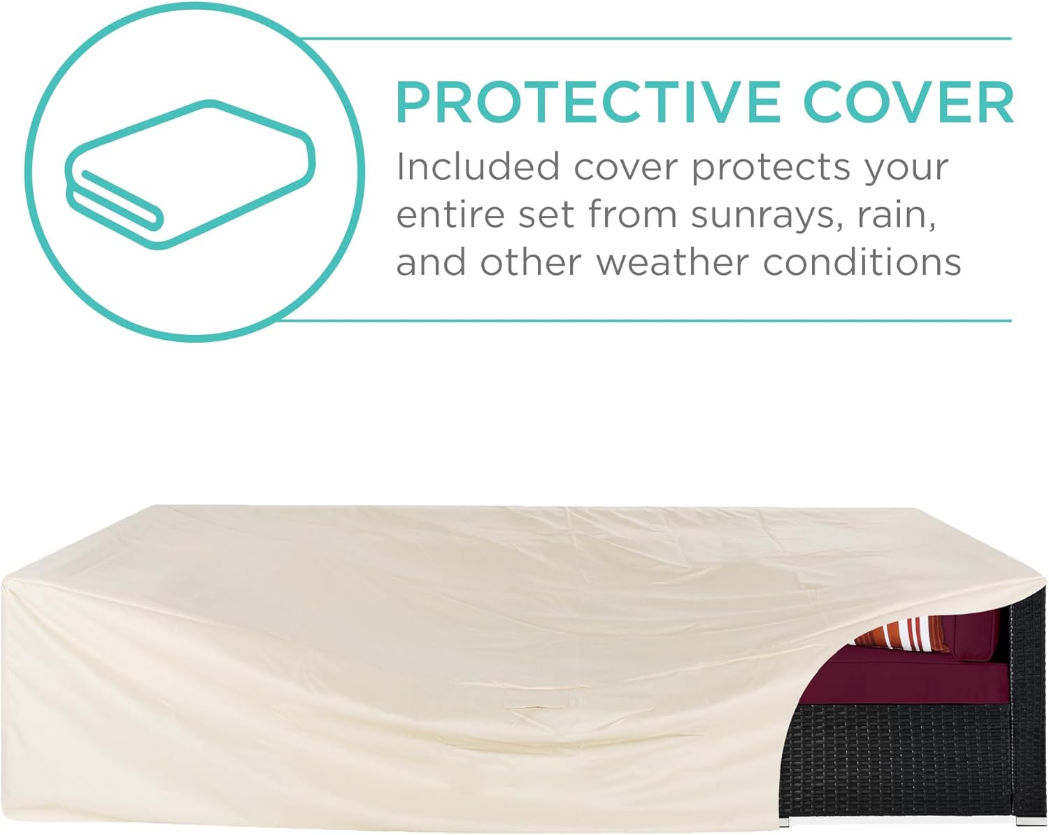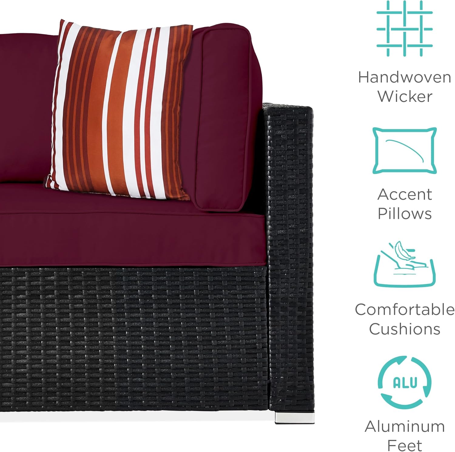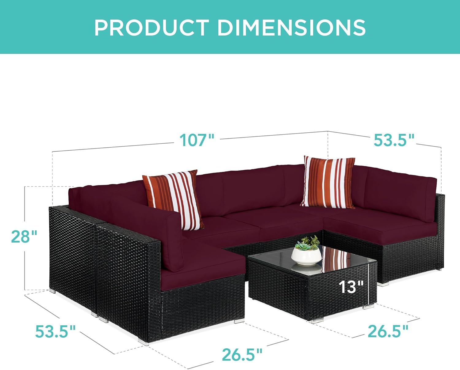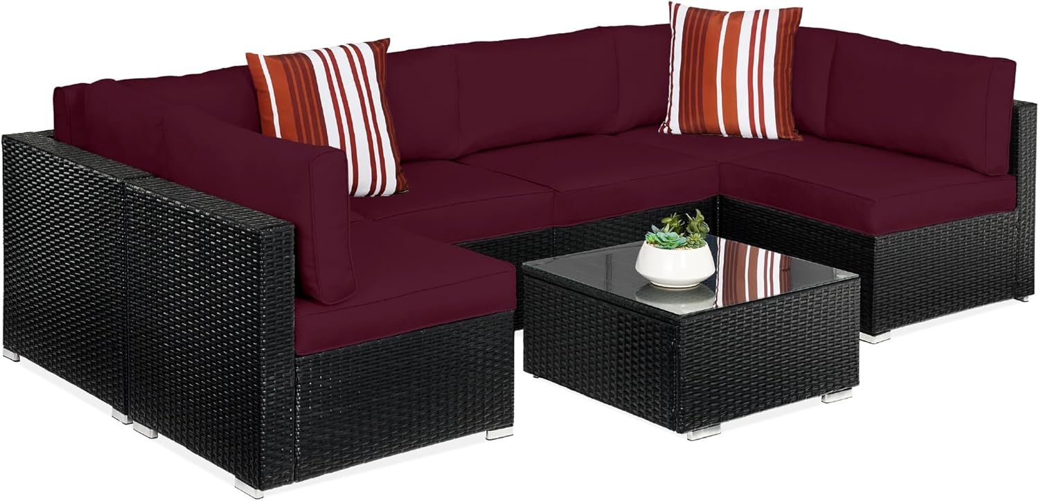 Best Choice Products 7-Piece Modular Outdoor Sectional Wicker Patio Conversation Set w/ 2 Pillows, Coffee Table, Cover Included – Black/Deep Burgundy