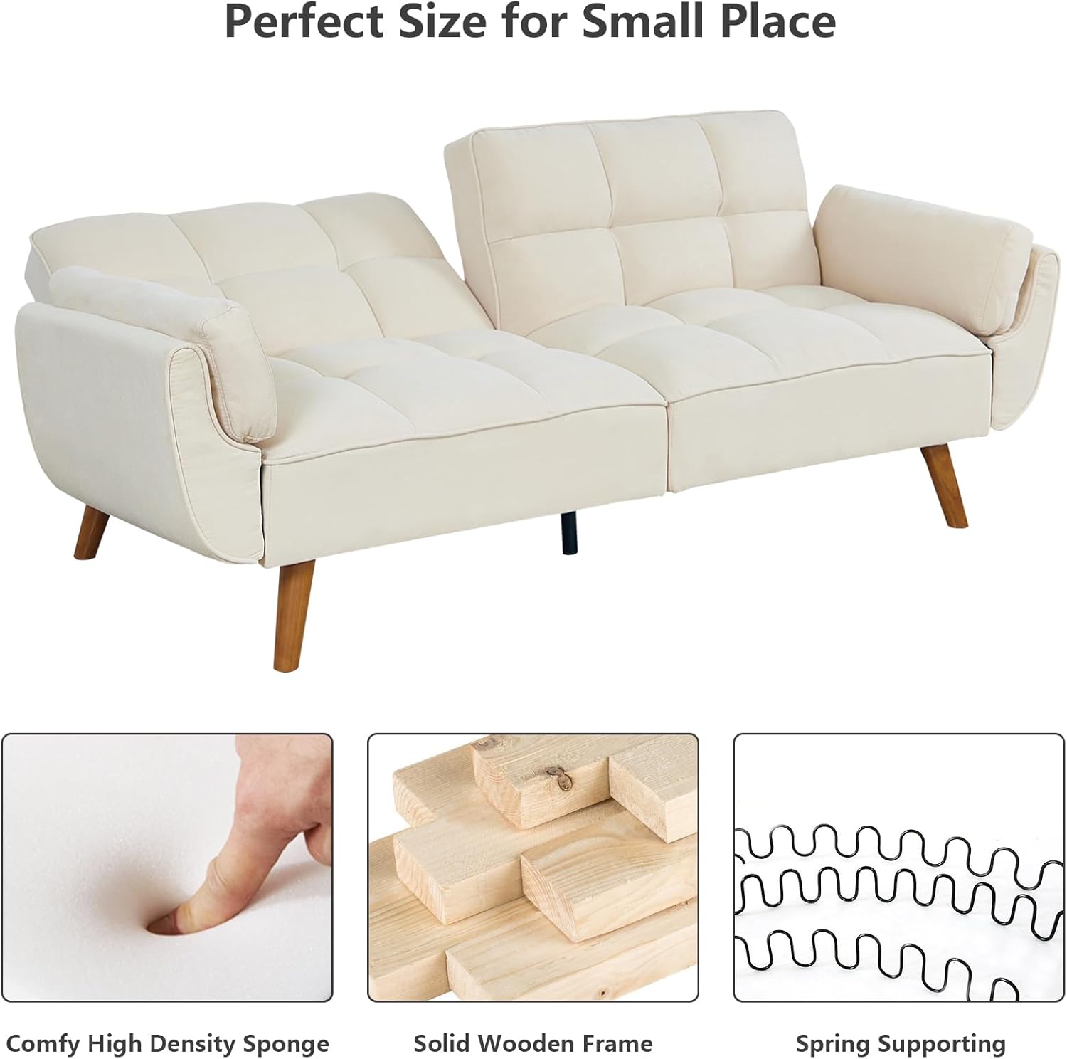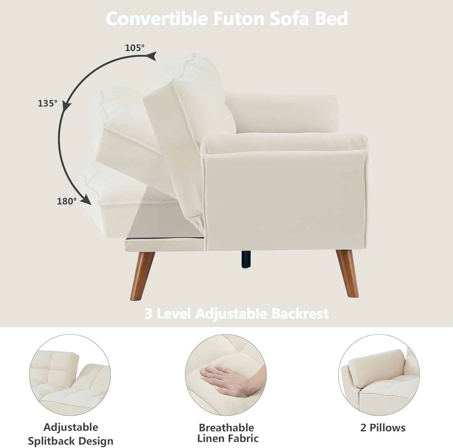 Betoko Convertible Futon Sofa Bed Sleeper Twin Size, Modern Linen Split-Back Sofa Couch with Pillow Top Arm