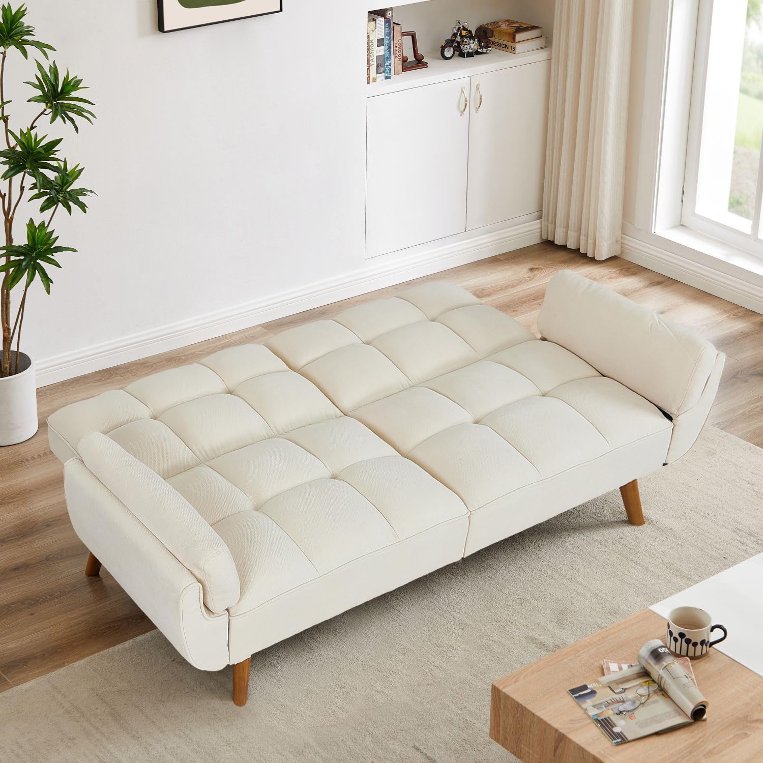 Betoko Convertible Futon Sofa Bed Sleeper Twin Size, Modern Reclining Linen Split Back Sofa Couch with Pillow Top Arm for Compact Living Room,Apartment (Beige)