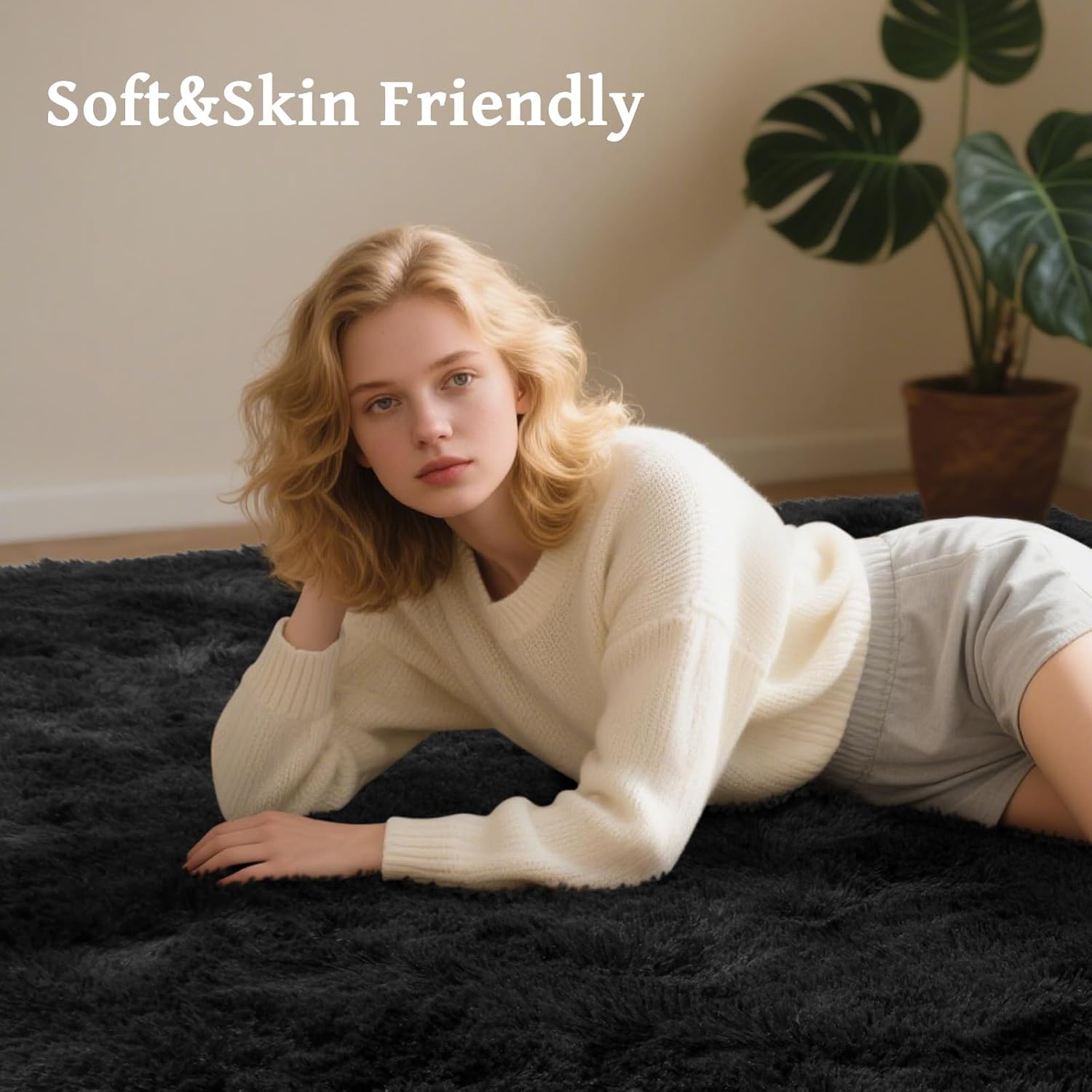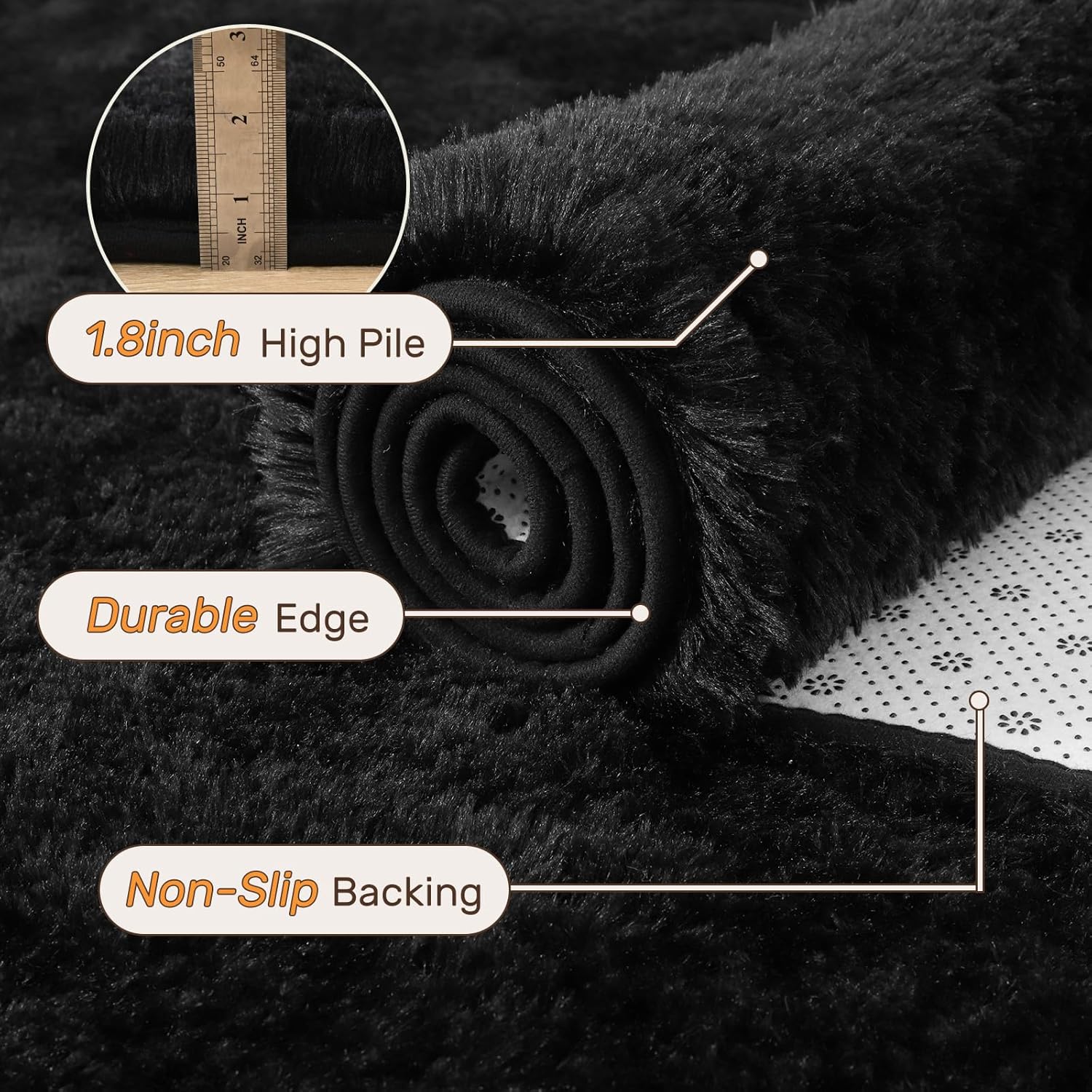 【Classic Black Rug】This black area rug is made of super soft 1.7-inch high plush and thickened no-skid bottom,effectively protecting your floor away from damage,stain,discoloration