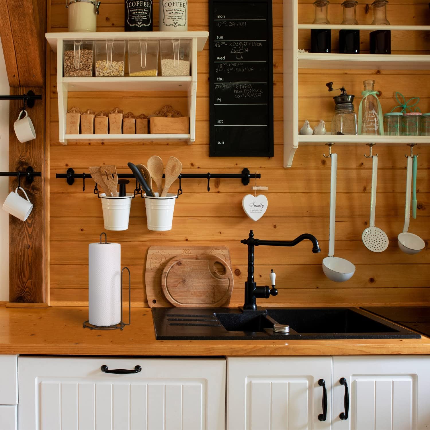Easy One Hand Paper Towel Tear – Dirty hands? Not a problem for this paper towel roll holder, which allows to easily tear one piece of paper towel with one hand without leaving the whole roll un-rolled