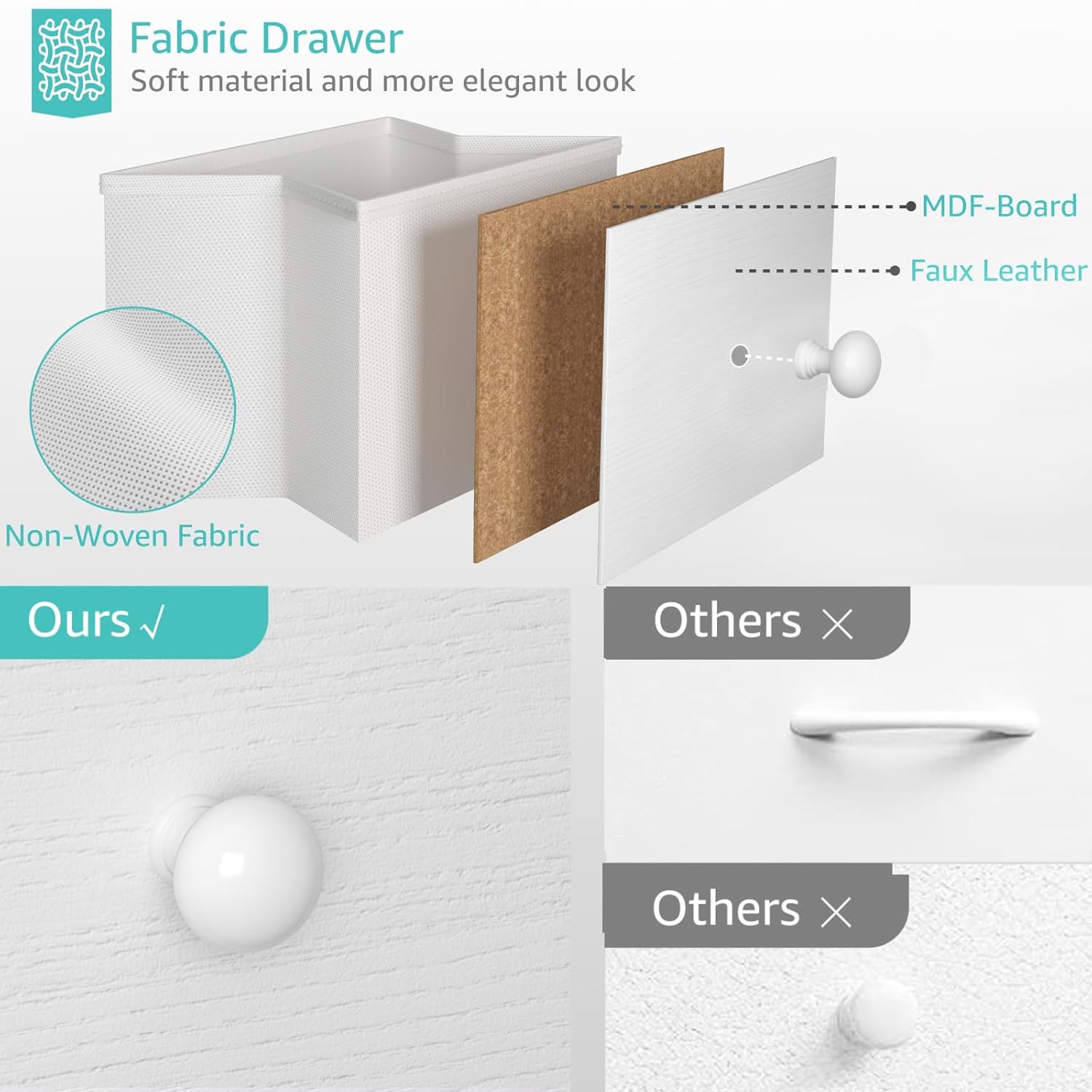 BOLUO Changing Table Dresser with 4 Fabric Drawers and Open Shelf, Baby Dresser with Changing Table Top Diaper Changing Station with Storage for Nursery Modern (White)