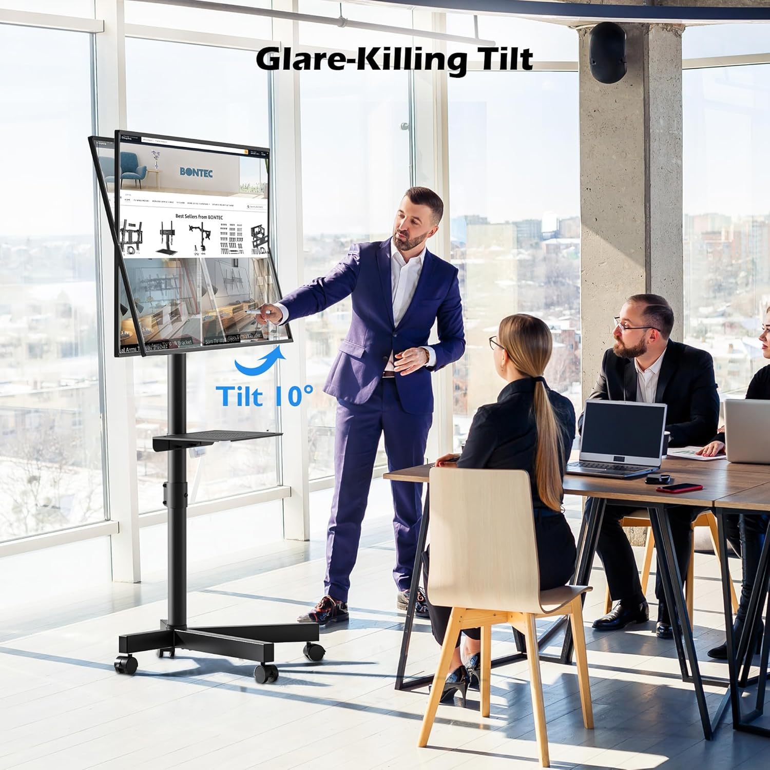 BONTEC Mobile TV Stand with Tilt Function, Rolling TV Stand for 23-60″ LED, LCD, OLED TVs, Holds up to 88lbs, Max VESA 400x400mm, Adjustable Media Shelf (Black, 17.1×15.1×53.1 in)