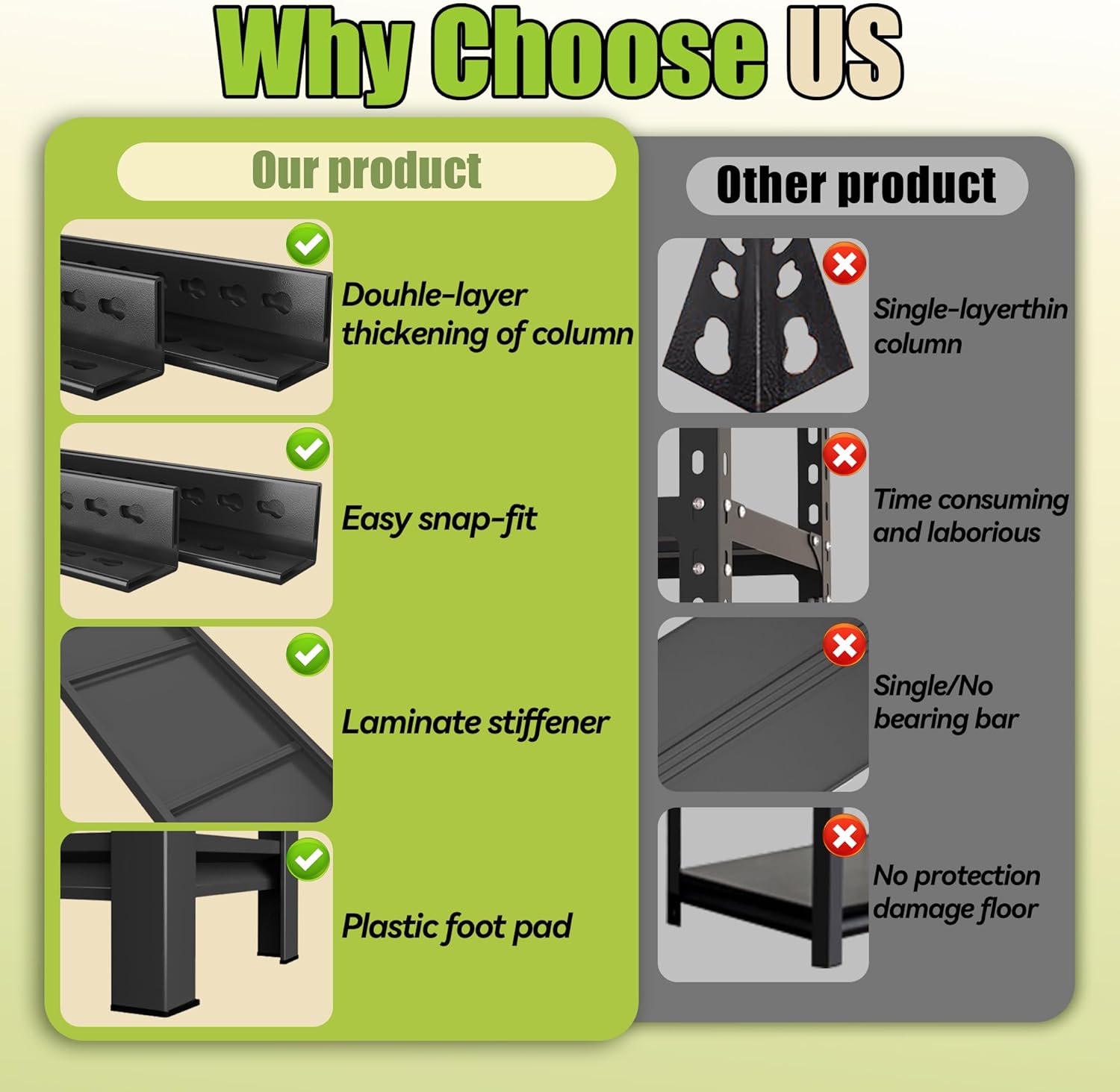 【Multi-function book shelf organizer】This book shelf for bedroom provides you with 5 tiers of vertical open storage organizer, each tier can withstand up to 600 pounds of load, for you to organize all kinds of books, Garage Kits, CDs, souvenirs, decorations, electronics, etc. provide stunning visual effect and practical storage space for your living room, study room, bedroom. so that your home environment is more neat and orderly, full of interest in life
