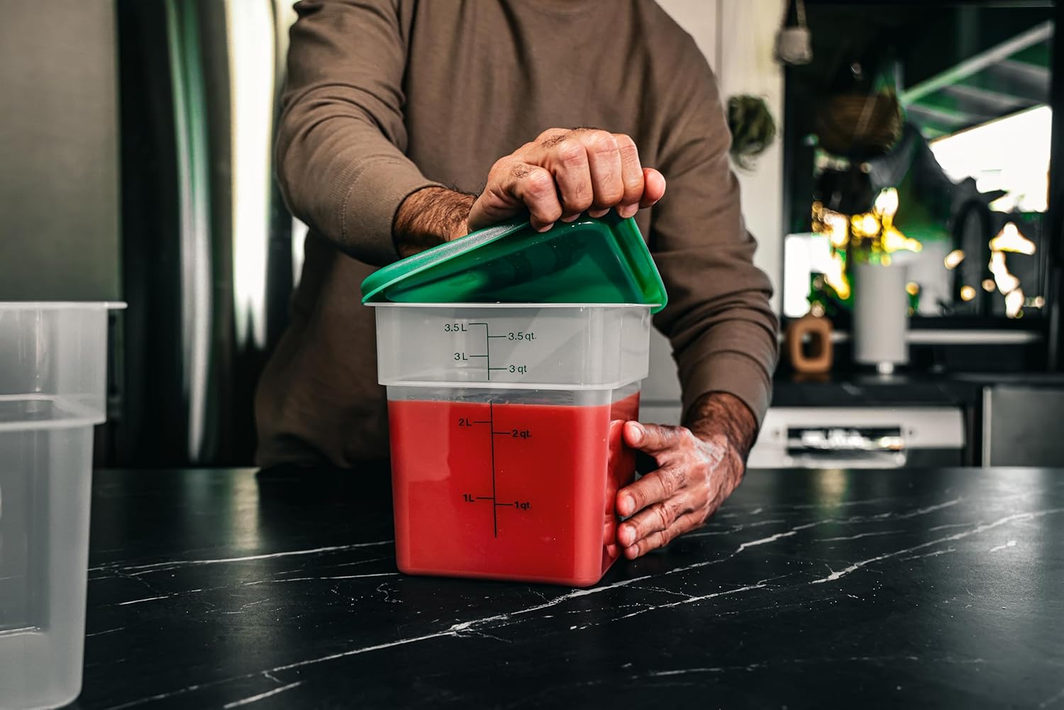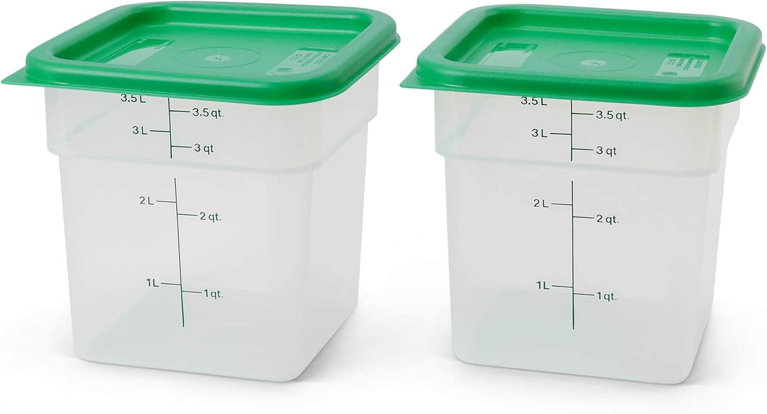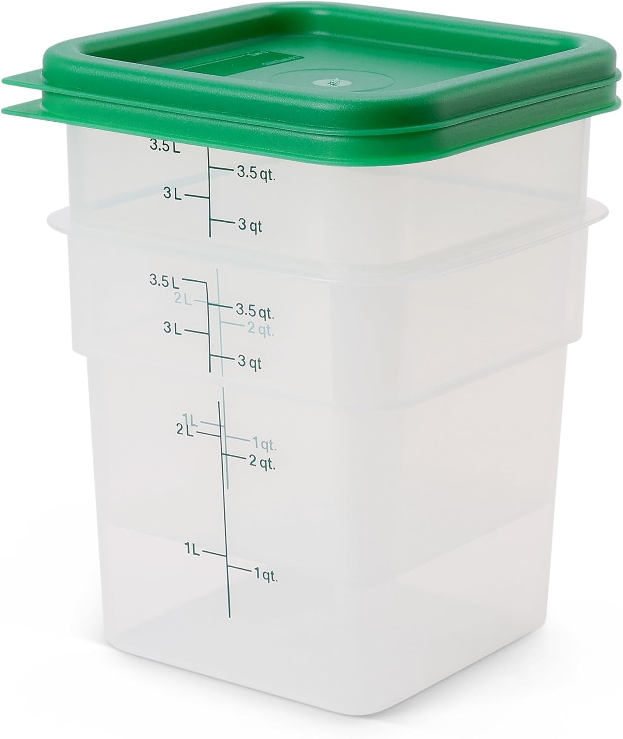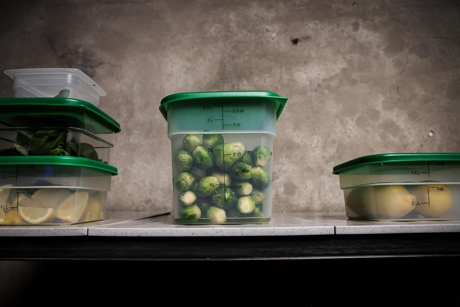 Cambro Food Storage Container with Lid (Microwave Safe and BPA-Free) – 2 Pack – Classic Series Square with Green Lid – 4 QT (Quart) – Commercial Grade for Food Prep (Translucent)