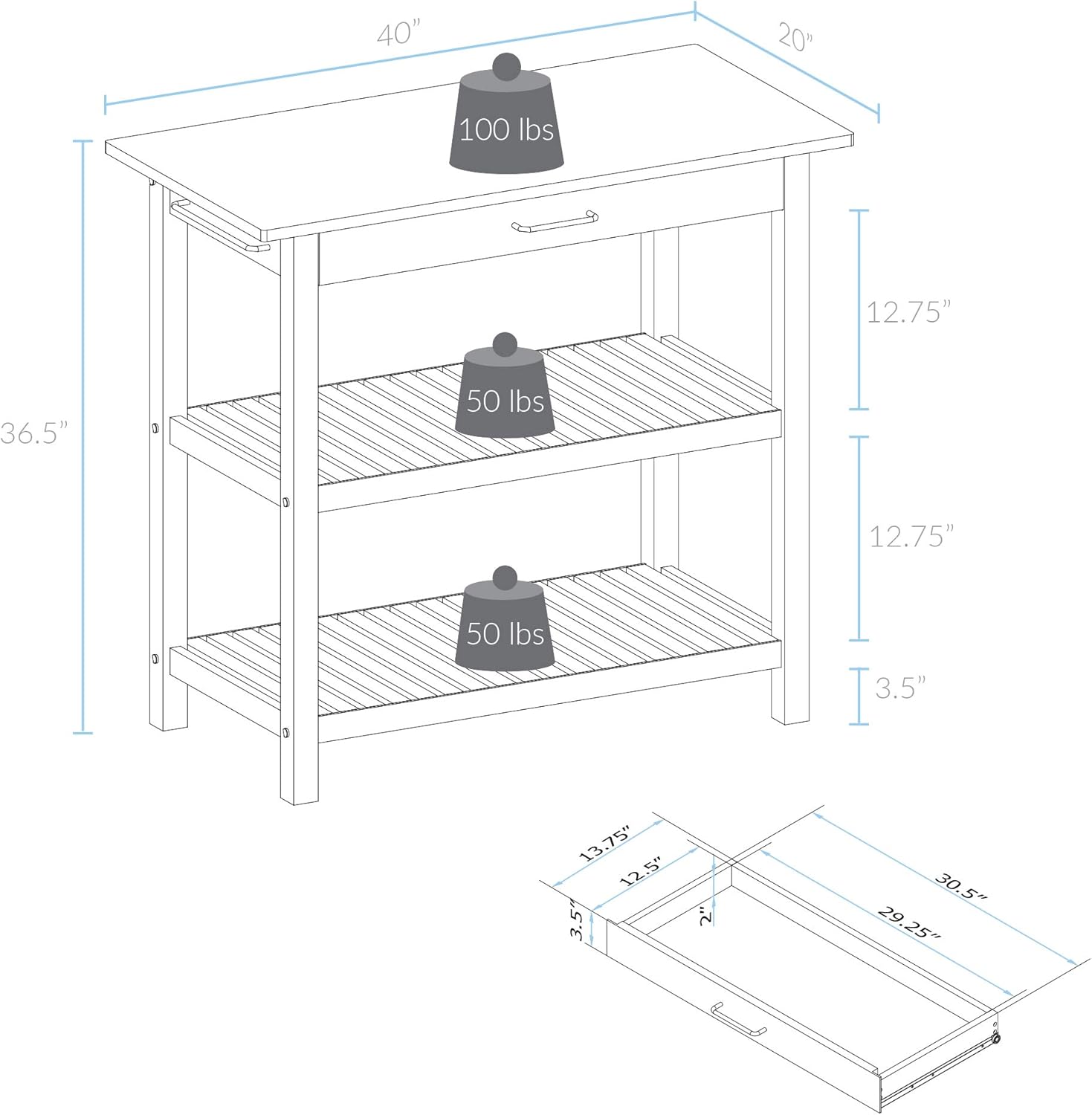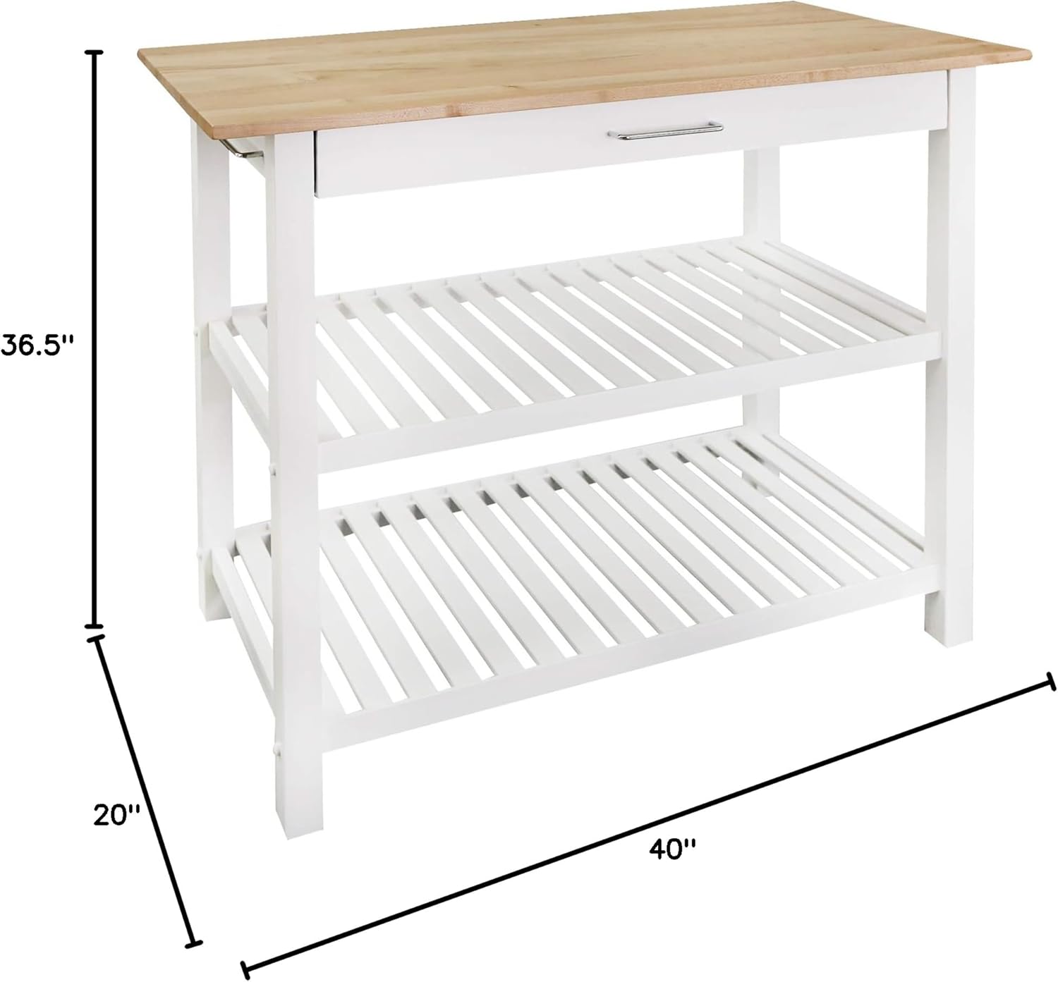 Casual Home Kitchen Island with Solid American Hardwood Top, Natural/White, 40″ W (373-91)