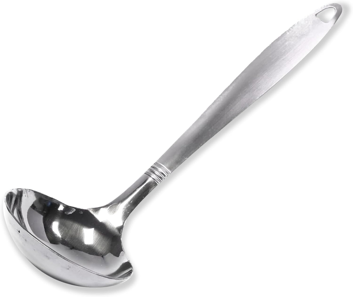 This 11 1/2-inch long ladle is designed from high quality heavy gauge stainless steel, has a brush finished handle with a hole in the top for easy hanging. It is a great size to go from cooking to serving. This Chef Craft stainless steel ladle makes scooping and serving your favorite soups and stews easy. The design looks great in any kitchen style. Dishwasher safe to make for easy cleaning.