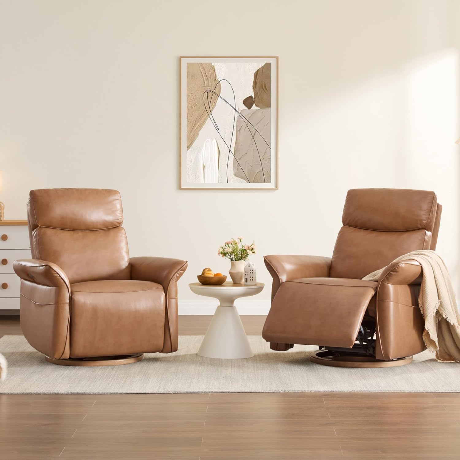 CHITA Genuine Leather Power Recliner Chair, Electric Triple-Motor Swivel Glider Nursery Rocking Chair with Adjustable Power Headrest and Lumbar Support, GREENGARD Gold Certified, Saddle Brown