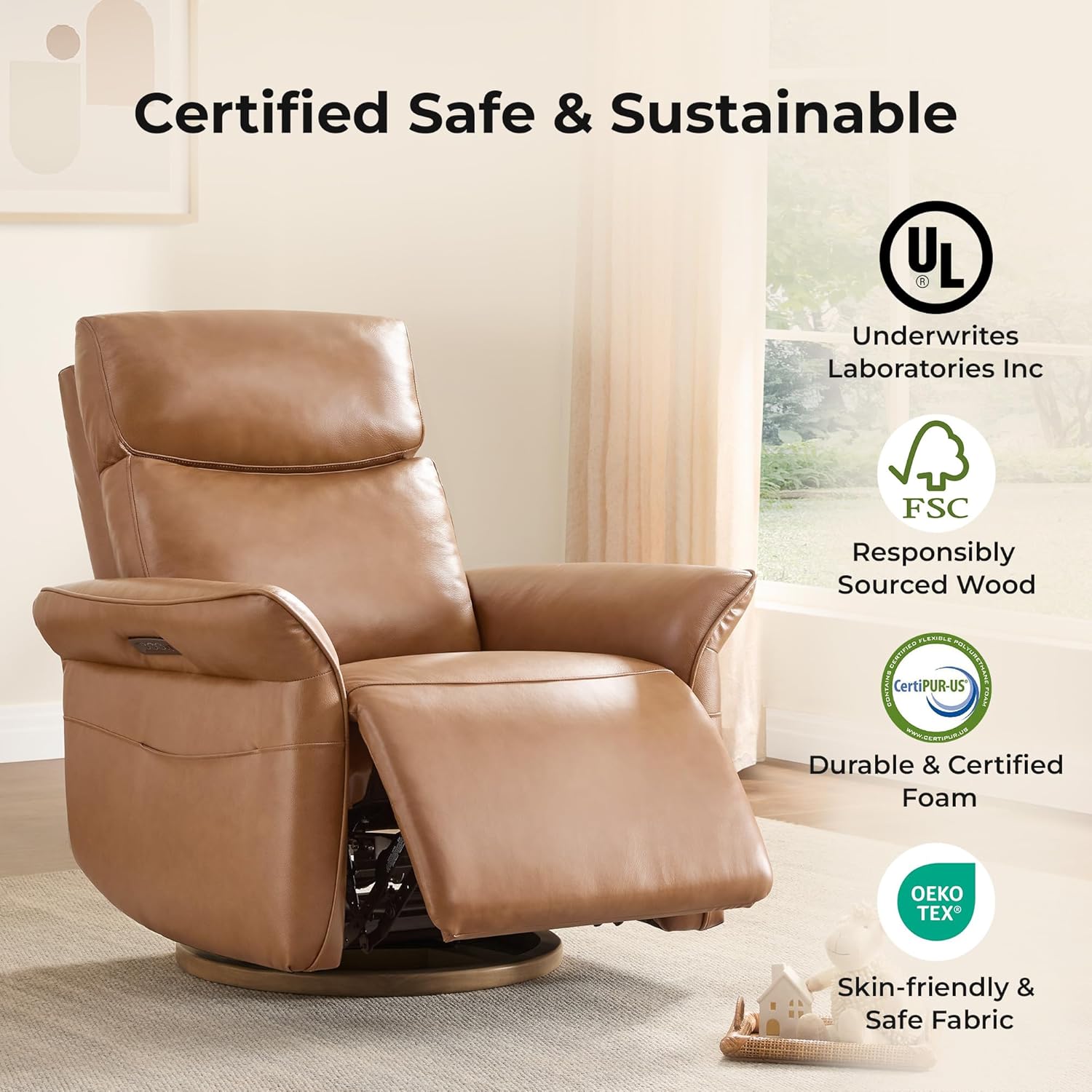 Durable & Sustainable Design: Engineered for longevity, this electric glider rocking chair features a patented Leggett & Platt mechanism rigorously tested through 25,000 cycles. Crafted with eco-conscious materials, it boasts CertiPUR-US certified foam, and FSC-certified wood from responsibly managed forests. This chair is GREENGUARD Gold Certified to provide better indoor air quality and peace of mind for family living spaces. Every element prioritizes durability and safety, ensuring lasting comfort while safeguarding your family’s health and indoor air quality.