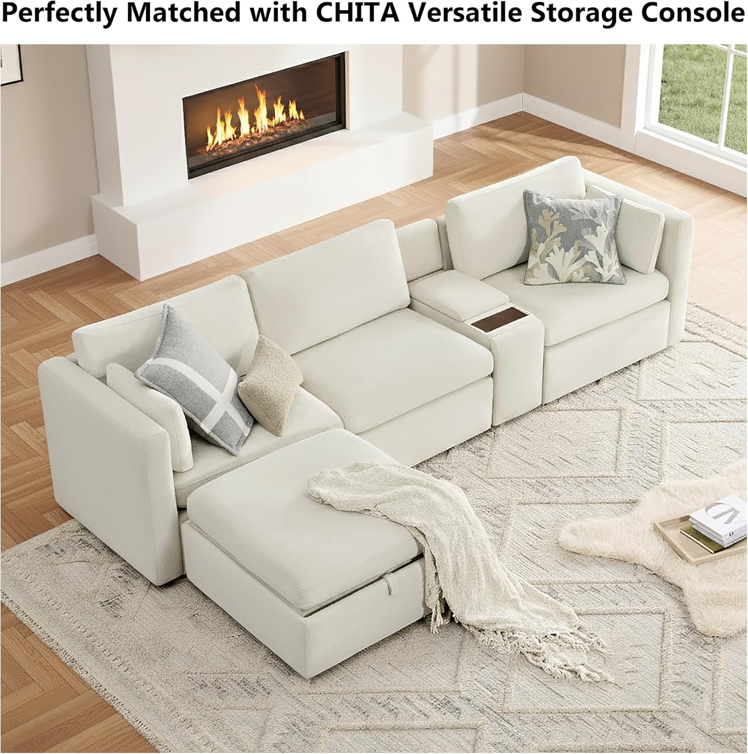 CHITA Oversized Modular Sectional Sofa, FSC Certified L Shaped Sectional Couches for Living Room, 112 inch Width,4 Seat Modular Sofa with Storage Ottoman, Linen