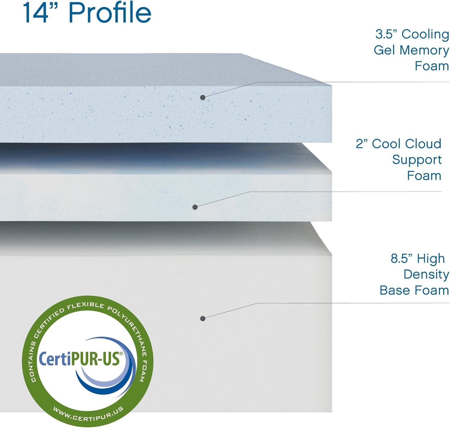 Experience ultimate comfort with the best Cool Gel 14-Inch Medium Firm Queen Memory Foam Mattress in a box, available on amazon in California King, King, Queen, Full, Twin, and Twin XL sizes. Featuring a luxurious 3.5-inch top layer of ventilated cool gel memory foam, this matress contours to your body’s shape while regulating temperature for a cooler, undisturbed sleep. This queen mattress features high-density memory foam which provides essential pressure relief, supporting proper spinal alignment and promoting a deeper, more restful night’s sleep. The breathable open-cell structure enhances airflow, keeping you cool and refreshed. This fiberglass-free memory foam mattress queen size meets CertiPUR-US standards for durability, performance, and emissions, ensuring a safe and healthy sleep environment. Enjoy added value with 2 bonus memory foam pillows (1 pillow included with Twin Mattress and Twin XL sizes) for superior neck and head support. Simple to set up – just unbox and let it expand naturally. Available Callifornia King Bed Mattress, King Bed Mattresses, Bed Queen Size Mattress, Full Mattress, Twin Bed Mattress, and Twin XL. Colchones de espuma queen. cali king, king mattress, full size, twin, and twin xl. CoolGel Mattress Memory Foam for the entire family, from twin size to cali king size.
