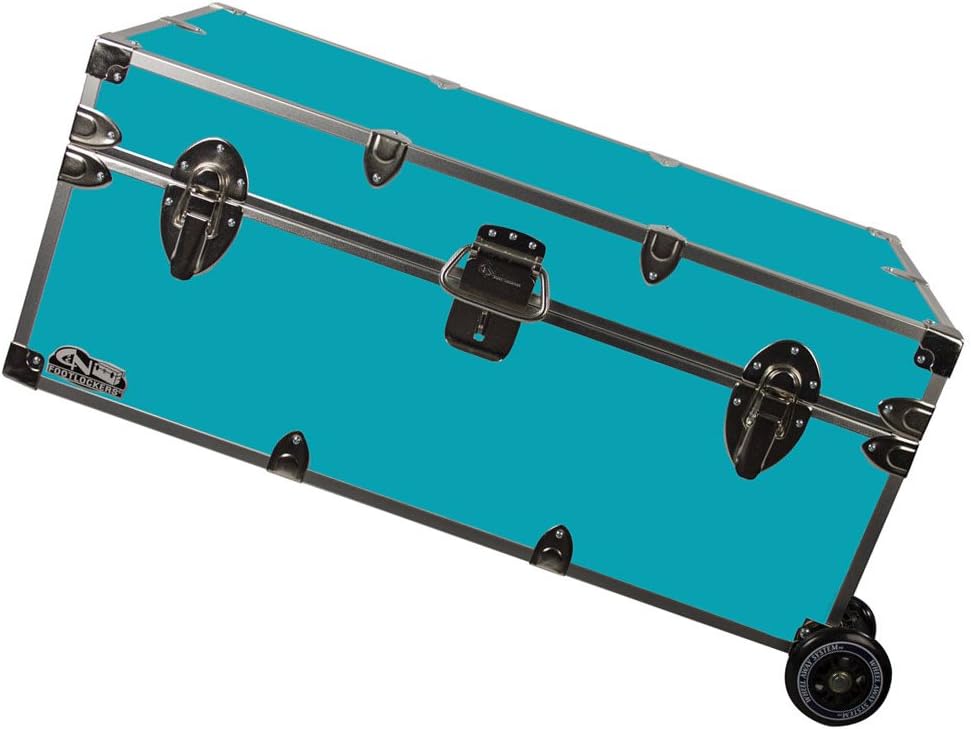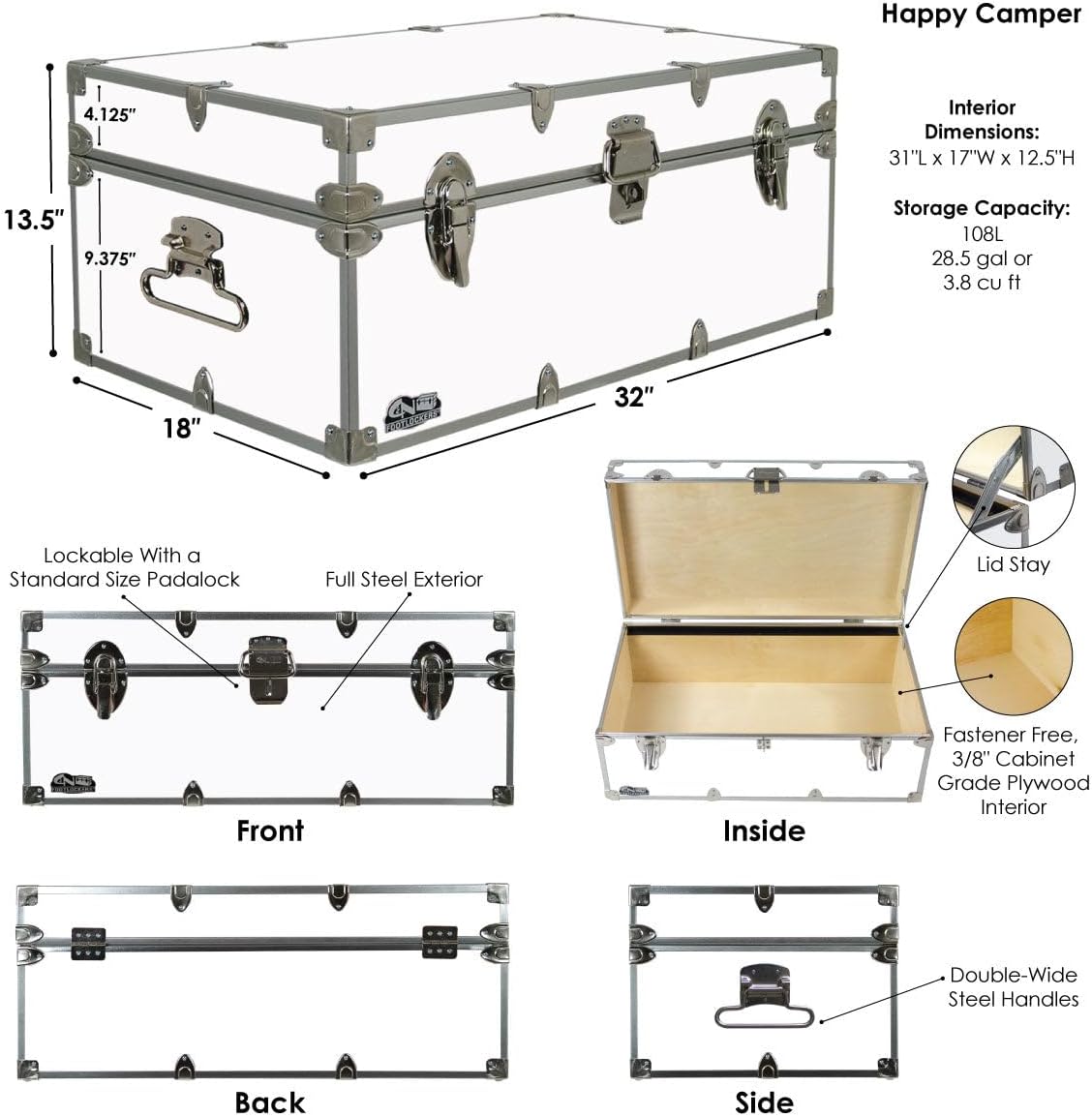 C&N Footlockers – Full-Size Happy Camper Trunk w/Wheels – #1 Summer Camp Trunk – Made in the USA – Steel Footlocker with Lid Stay – 32 x 18 x 13.5 Inches (Mint)