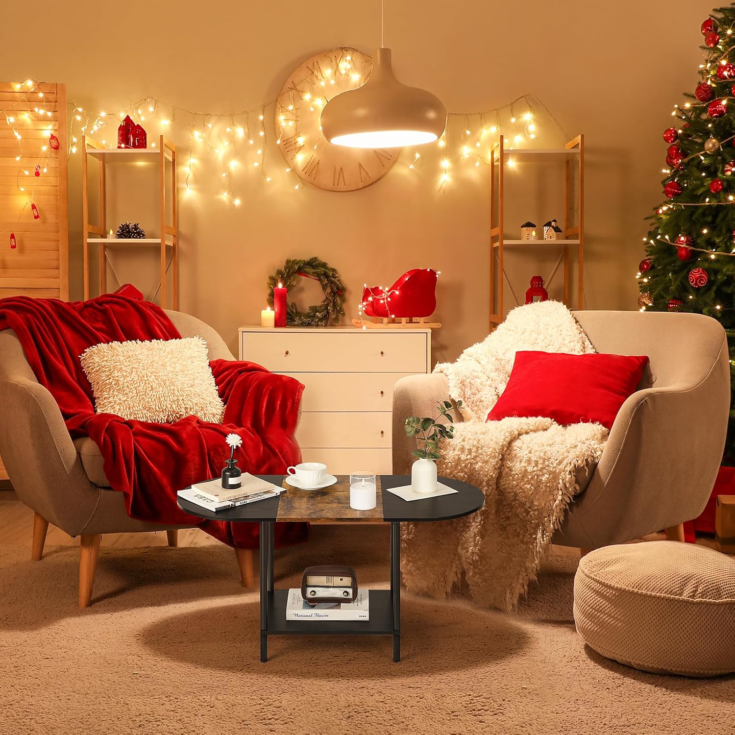 Spacious Storage Space – The simple design of this small coffee table with 2-tier storage shelves provides you plenty of space to store books,magazines,remotes,and other small items,keeping your living room neat and organized