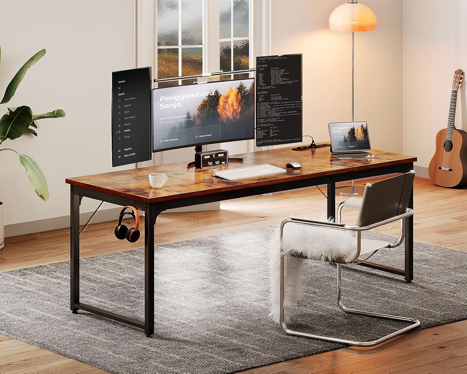 Coleshome 71 Inch Computer Desk with USB Ports, Large Office Desk, Long Study Student Writing Desk, Rustic Brown