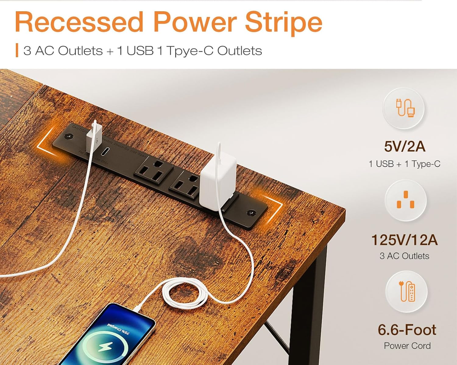 【Power Outlets & Charging Ports】 Coleshome computer desk is equipped with 3 Power outlets & 1 USB charging port & 1 Type-C port for electronic devices, you can easily and conveniently charge your smart phone, gaming gear or Bluetooth devices when you are working or playing games.