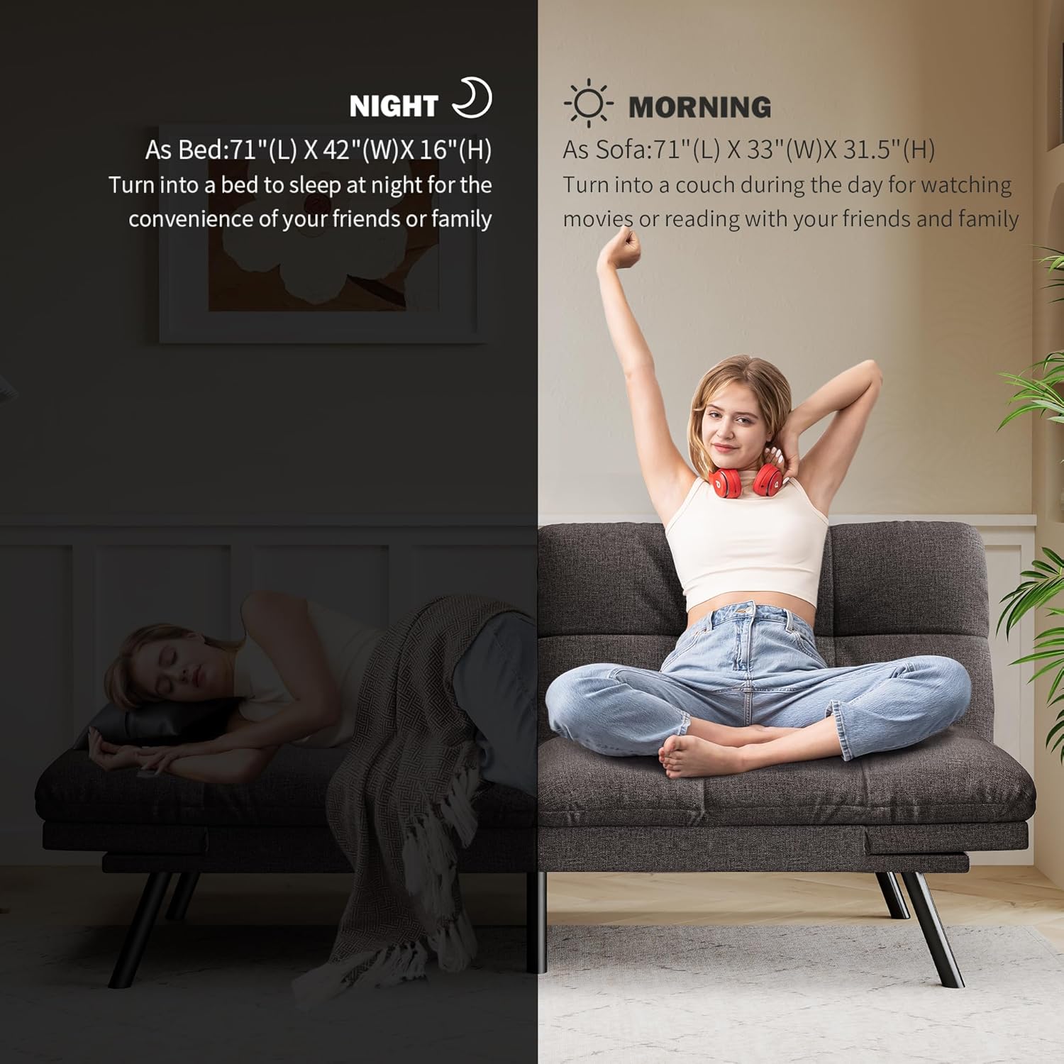【High Quality Material】: The 3 inches of memory foam and support foam filling effectively disperse pressure, enhancing your sleeping comfort. Our sofa bed is meticulously designed to provide you with the utmost comfort. The premium linen fabric is luxuriously soft to the touch and resistant to aging, ensuring a comfortable experience for years to come.