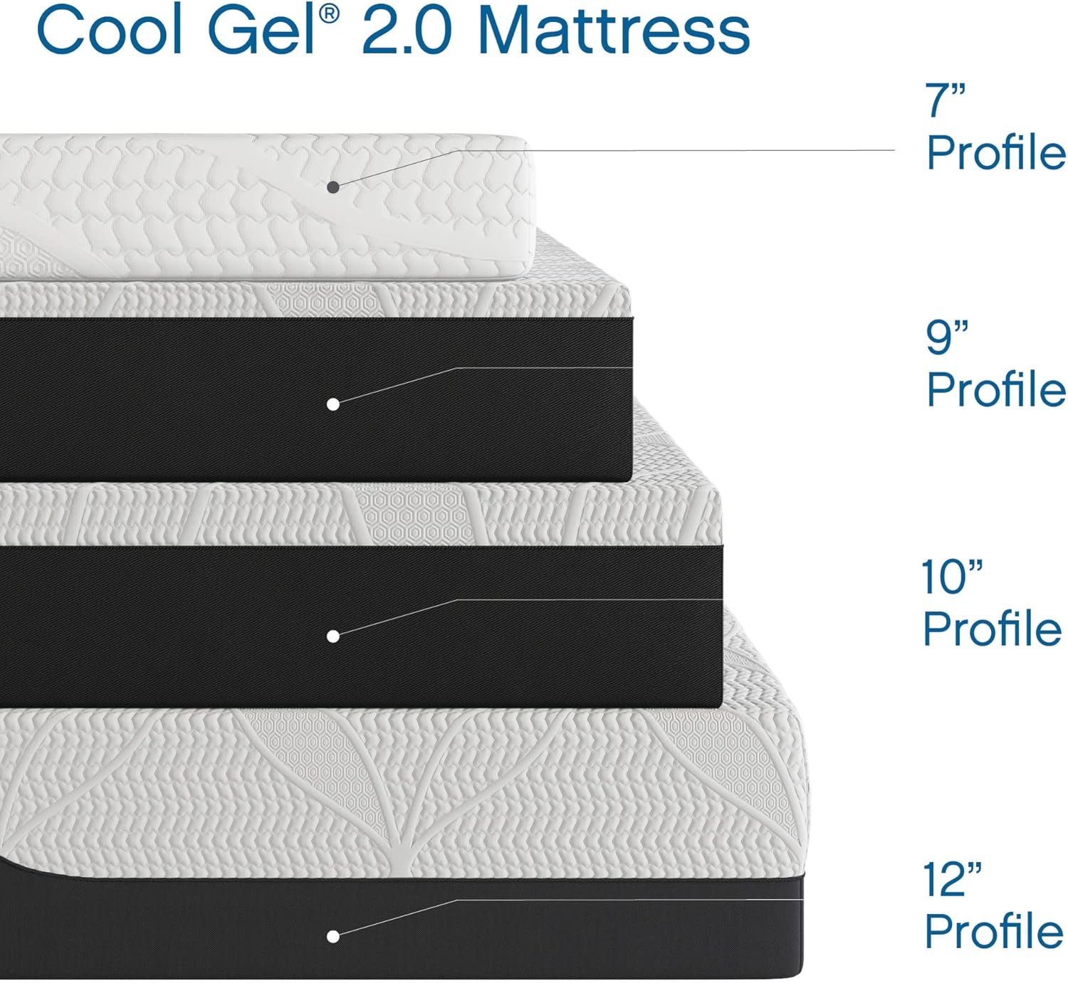 Experience ultimate comfort with the best Cool Gel 14-Inch Medium Firm Full Memory Foam Mattress in a box, available on amazon in California King, King, Queen, Full, Twin, and Twin XL sizes. Featuring a luxurious 3.5-inch top layer of ventilated cool gel memory foam, this matress contours to your body’s shape while regulating temperature for a cooler, undisturbed sleep. This full mattress features high-density memory foam which provides essential pressure relief, supporting proper spinal alignment and promoting a deeper, more restful night’s sleep. The breathable open-cell structure enhances airflow, keeping you cool and refreshed. This fiberglass-free memory foam mattress full size meets CertiPUR-US standards for durability, performance, and emissions, ensuring a safe and healthy sleep environment. Enjoy added value with 2 bonus memory foam pillows (1 pillow included with Twin Mattress and Twin XL sizes) for superior neck and head support. Simple to set up – just unbox and let it expand naturally. Available Callifornia King Bed Mattress, King Bed Mattresses, Bed Queen Size Mattress, Full Mattress, Twin Bed Mattress, and Twin XL. Colchones de espuma queen. cali king, king mattress, full size, twin, and twin xl. CoolGel Mattress Memory Foam for the entire family, from twin size to cali king size.