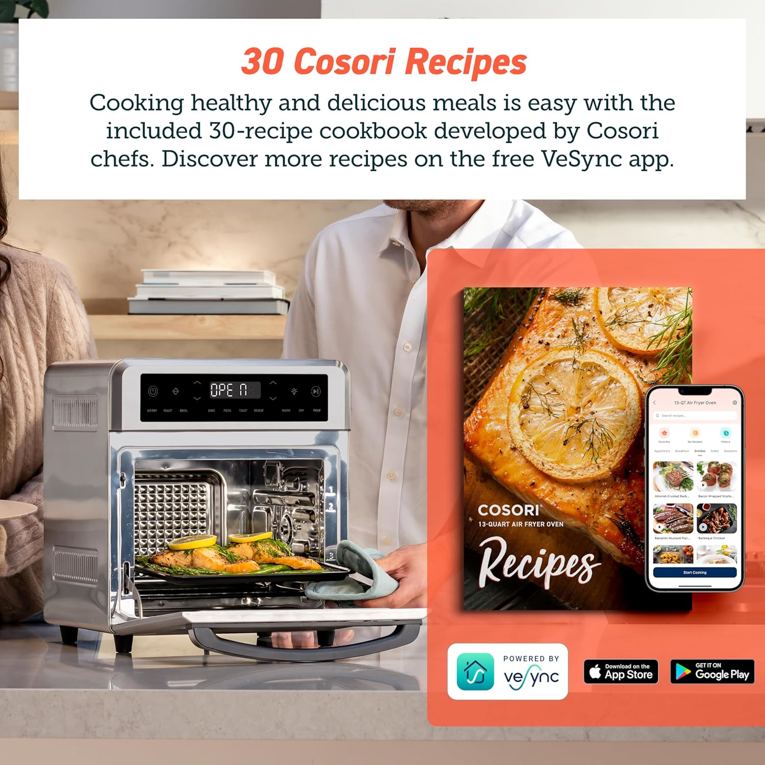 COSORI 11-in-1 Air Fryer Oven , 13Qt Small Footprint Airfryer combo with Rotisserie, Toast, Bake, Roast, Reheat Functions and more, Recipe Book & 6 Accessories Included, Perfect for Small Contertop