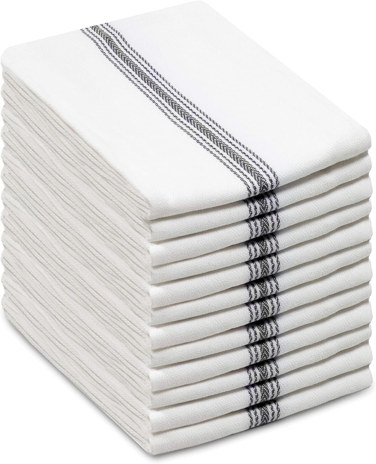 Cotton Craft – Scandia Stripe 12 Pack – Pure Cotton – Professional Commercial Restaurant Grade Kitchen Dish Tea Towel Cloth Napkins – Low Lint Sturdy Weave – Reusable – 16×28-30 Ounces – Charcoal