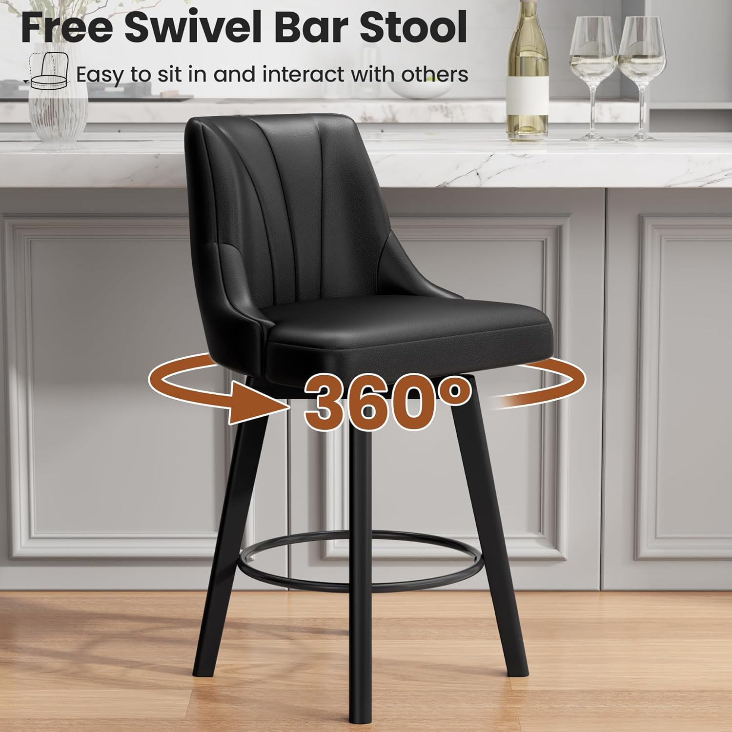 360° Free Swivel: The counter height stools feature a 360° swivel design that allows you to easily rotate the seat as your body moves. Whether you are chatting with friends or gathering, it makes it easier for you to interact with others.