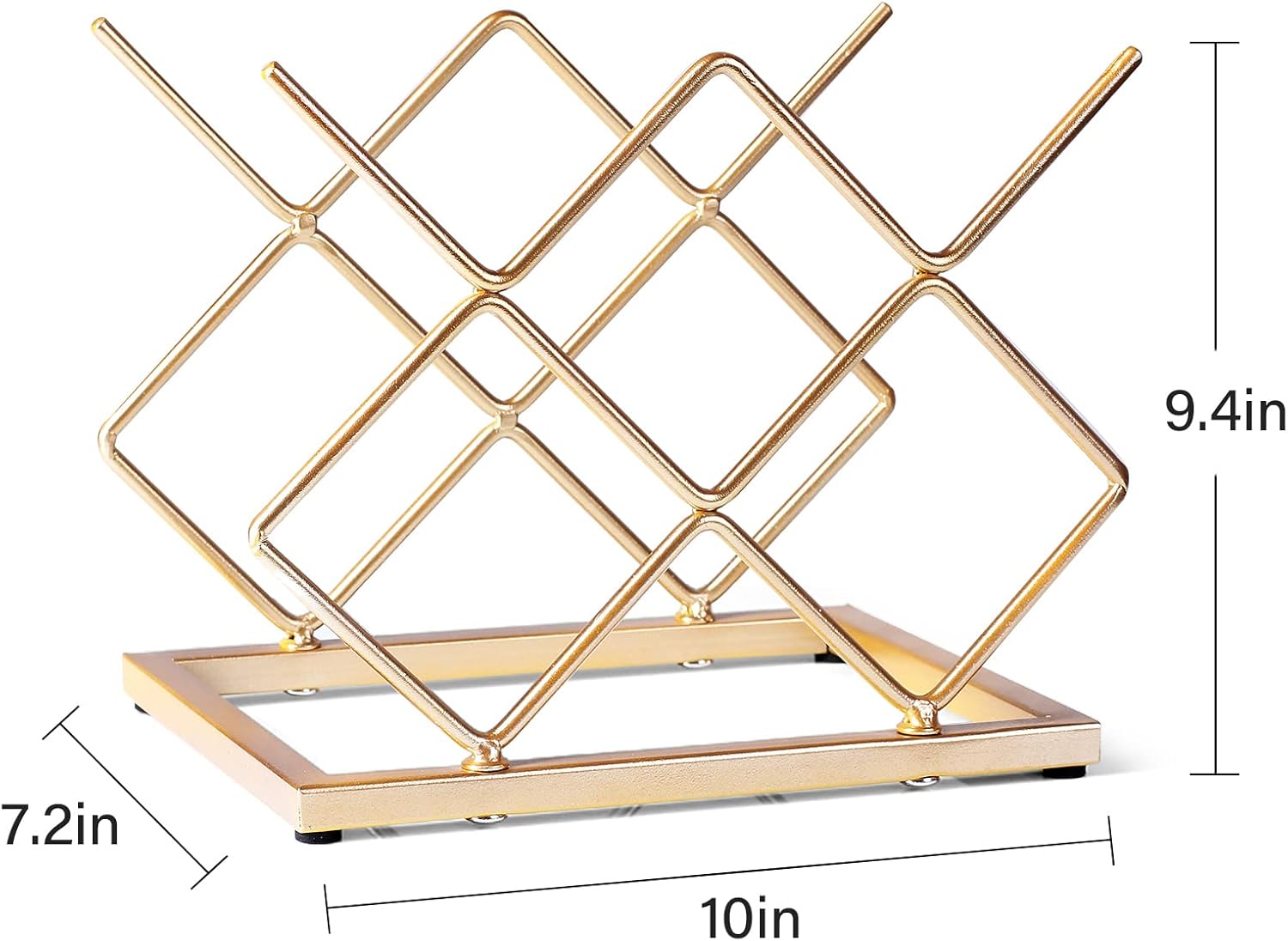 Countertop Wine Rack – 5 Bottle Freestanding Modern Gold Metal Small Wine Rack – Tabletop Wine Holder Stand for Cabinet, Pantry, Wine Bottle Storage…