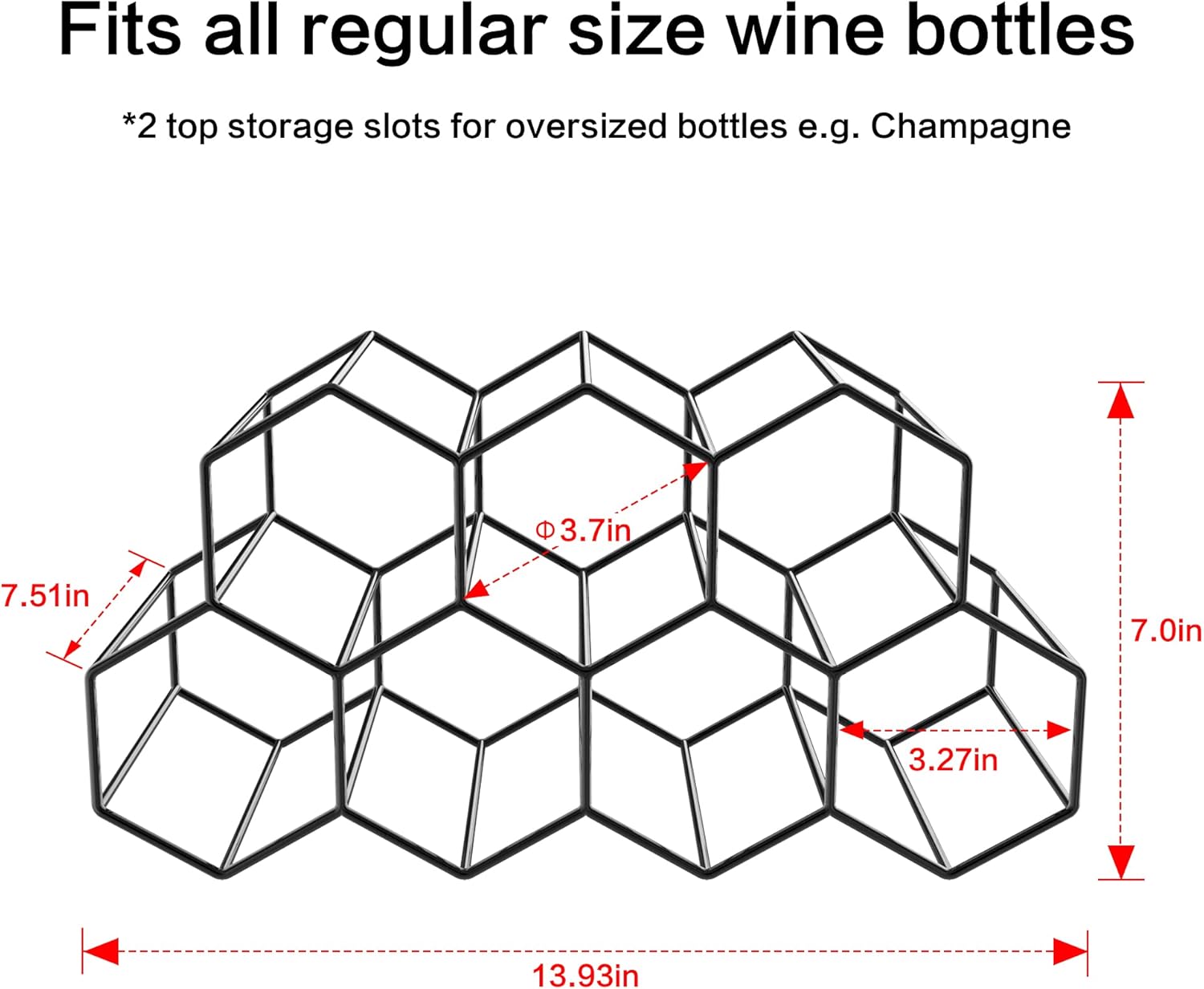 Countertop Wine Rack Freestanding, Small Metal Honeycomb Wine Holder Stand, Black 9 Bottle Organizer for Water Bottles, Tabletop Storage Rack for Home Kitchen Bar