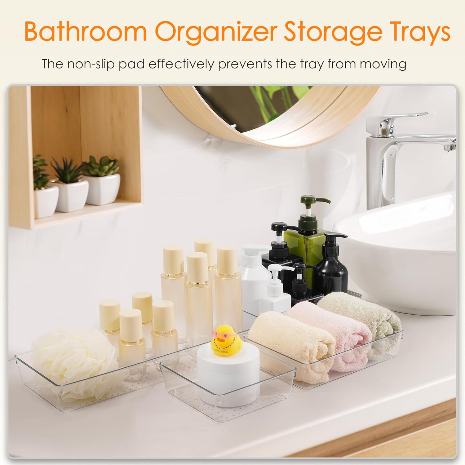 Non-Slip Design: Simply glue silicone non-slip pads to the bottom of the plastic tray to securely hold the bathroom organizers in place. No need to worry about moving or sliding when opening and closing drawers
