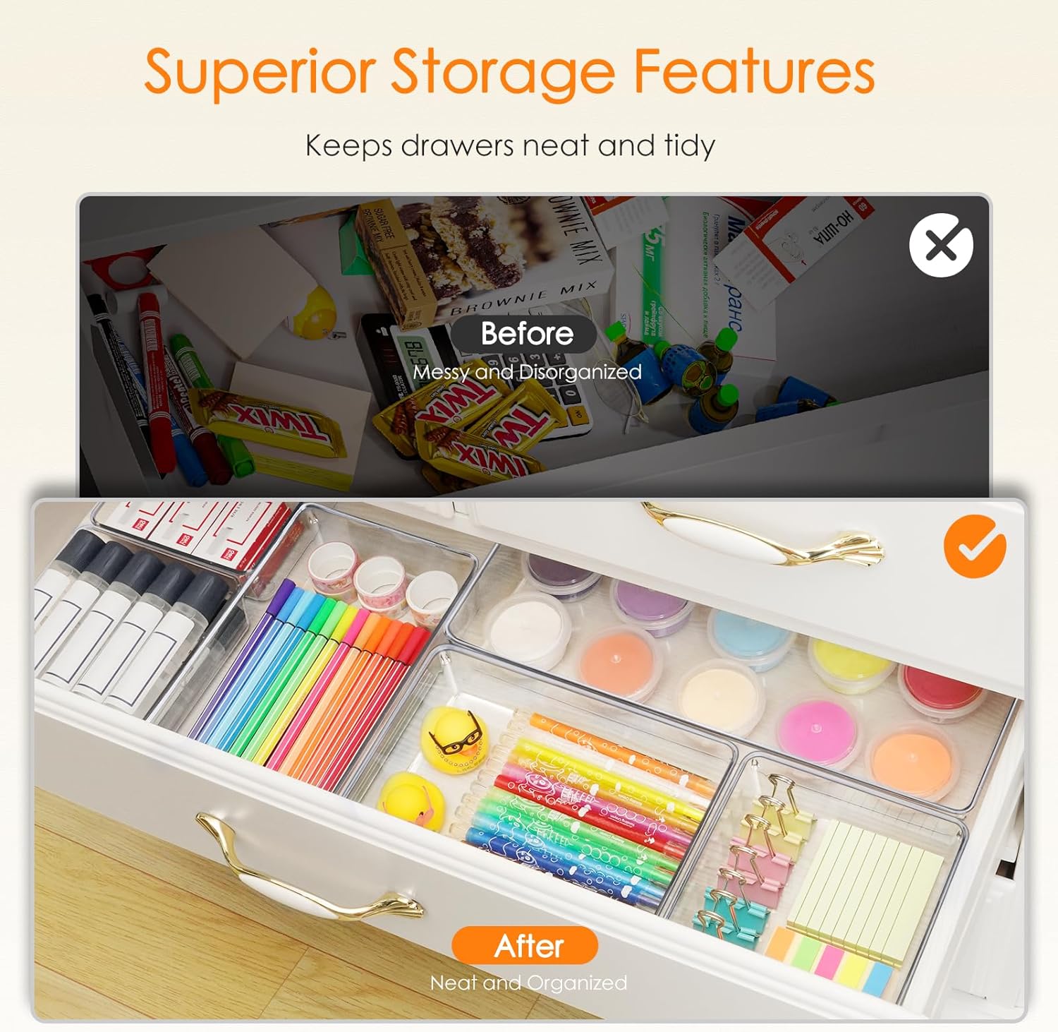 Space-Saving: Maximize your space and keep your drawers neat and tidy with this versatile set, save your time to organize and find your stuff. When you’re not using it Stack these storage boxes together so that you can save maximum space
