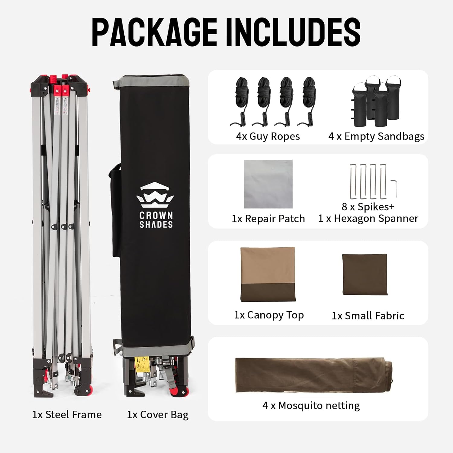 CROWN SHADES 13×13 Pop Up Gazebo, Canopy Tent, Gazebos on Clearance – Outdoor Gazebo for Backyard & Patio Furniture – Carpa Pop Up Tent with Wheeled STO-N-Go Cover Bag (Beige & Coffee)
