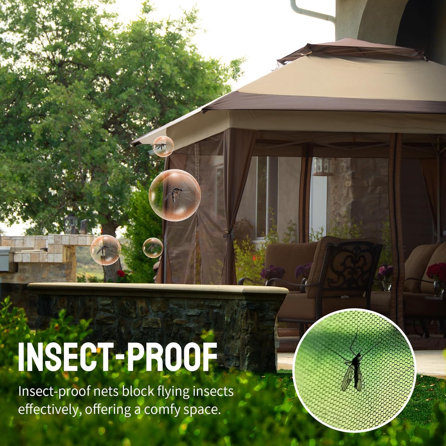 UPGRADE FABRIC: Rugged 300D silver coated canopy fabric provides UPF 50+ UV protection. The CPAI-84 rated flame resistant fabric is water repellant and includes waterproof sealing tape to protect against water pooling in wet conditions.The removable netting-screen included to help keep pests away.