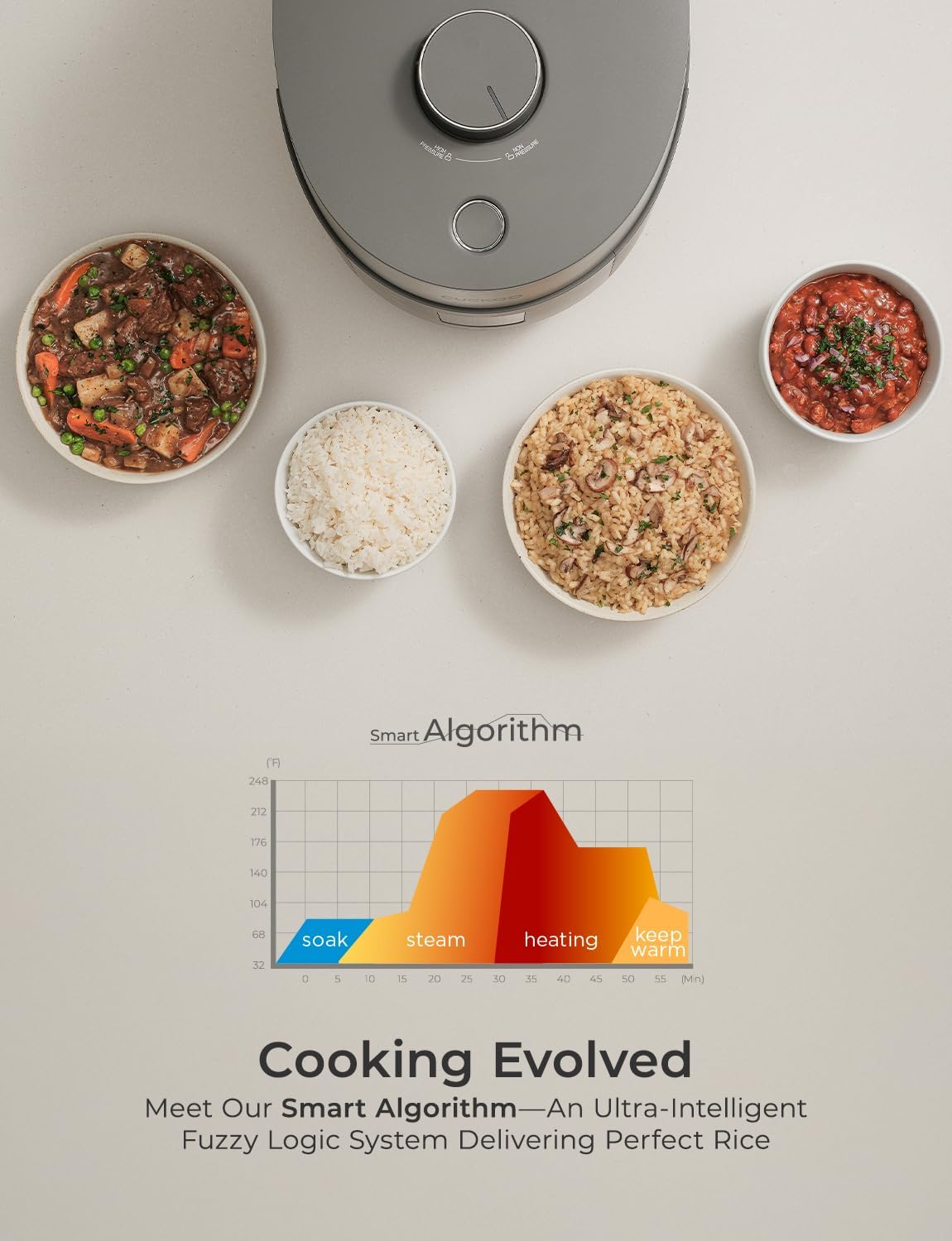 CUCKOO Twin Pressure Rice Cooker 6-Cup Uncooked / 12-Cup Cooked with Nonstick Inner Pot, Versatile Rice Maker & Warmer with 16 Menu Options, Open Cooking Mode, Voice Guide, Gray (CRP-ST0609FG)
