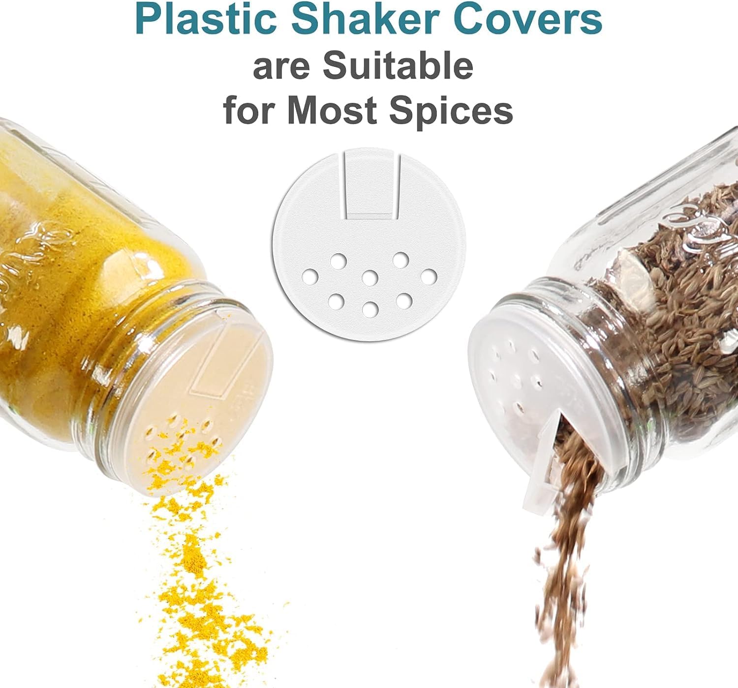Two in One Cover: Exclusive sift and pour shaker lids matching metal airtight caps which means your herbs and spices can stay fresher longer. And it’s much easier to use in cooking