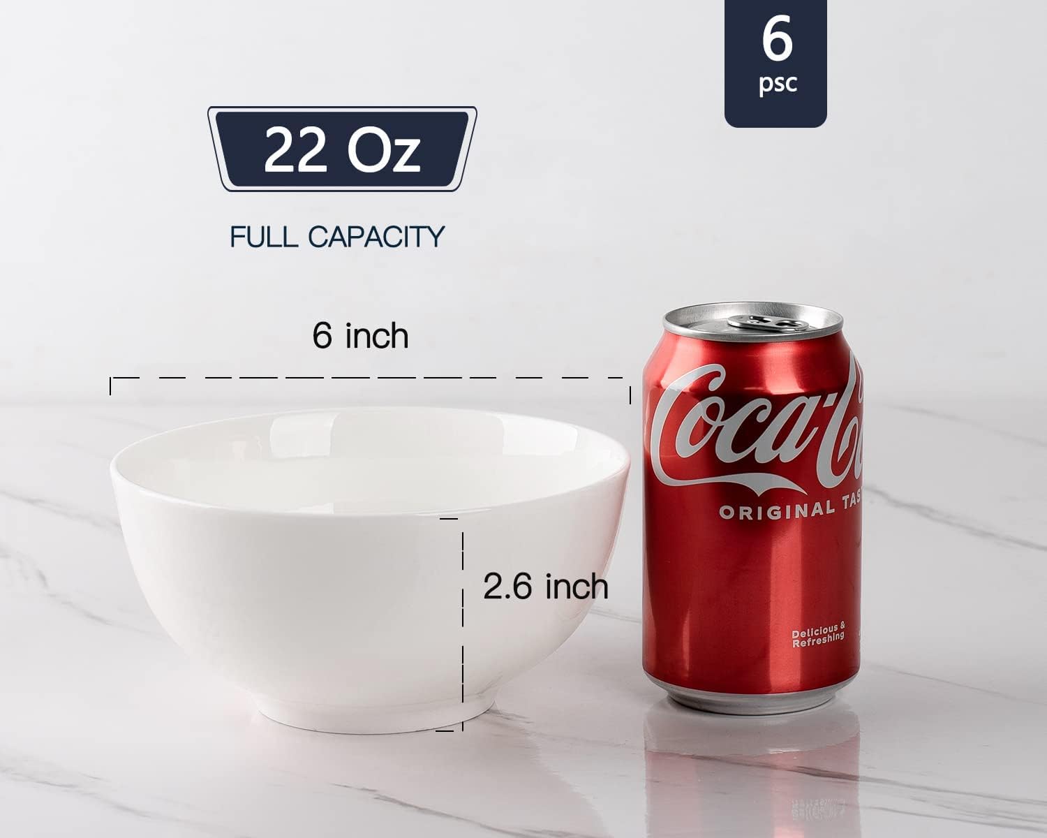 Perfect Size & Versatile: Soup Bowl top to the rim, 6 x 2.6 inch, holds 22 oz/480 ml. Cereal bowl is big and deep enough to hold cereal, soup without splashing up on you. White porcelain bowls used for everything from morning cereal to late night snacking with ice cream, especially perfect for soup, salad, pasta, oatmeal, and popcorn.