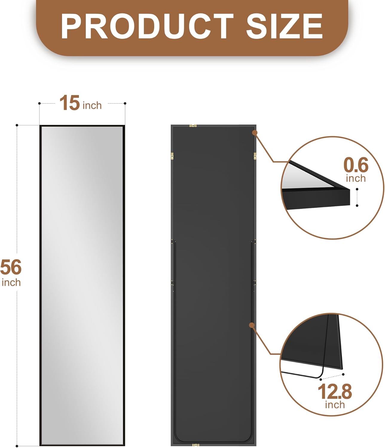 This standing mirror measures 56×15 inches. Suitable for bathrooms, bedroom, living room, behind the door, which can be mounted on wall,free standing. This full length mirror is a must-have for home improvement.