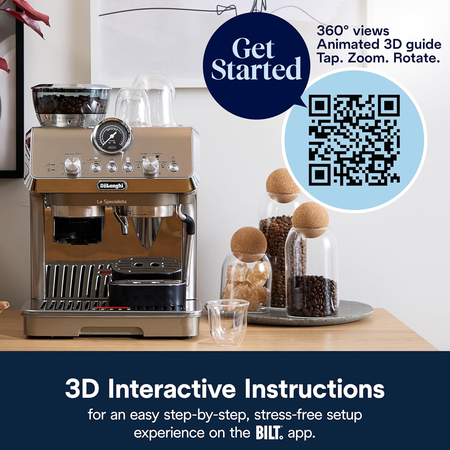 COMPACT DESIGN & EASY CLEAN UP. La Specialista Arte Evo’s compact & stylish design is perfect for modern living spaces. The barista kit and detachable, dishwasher safe parts make clean up a breeze so you can sit back and enjoy your coffee creations.