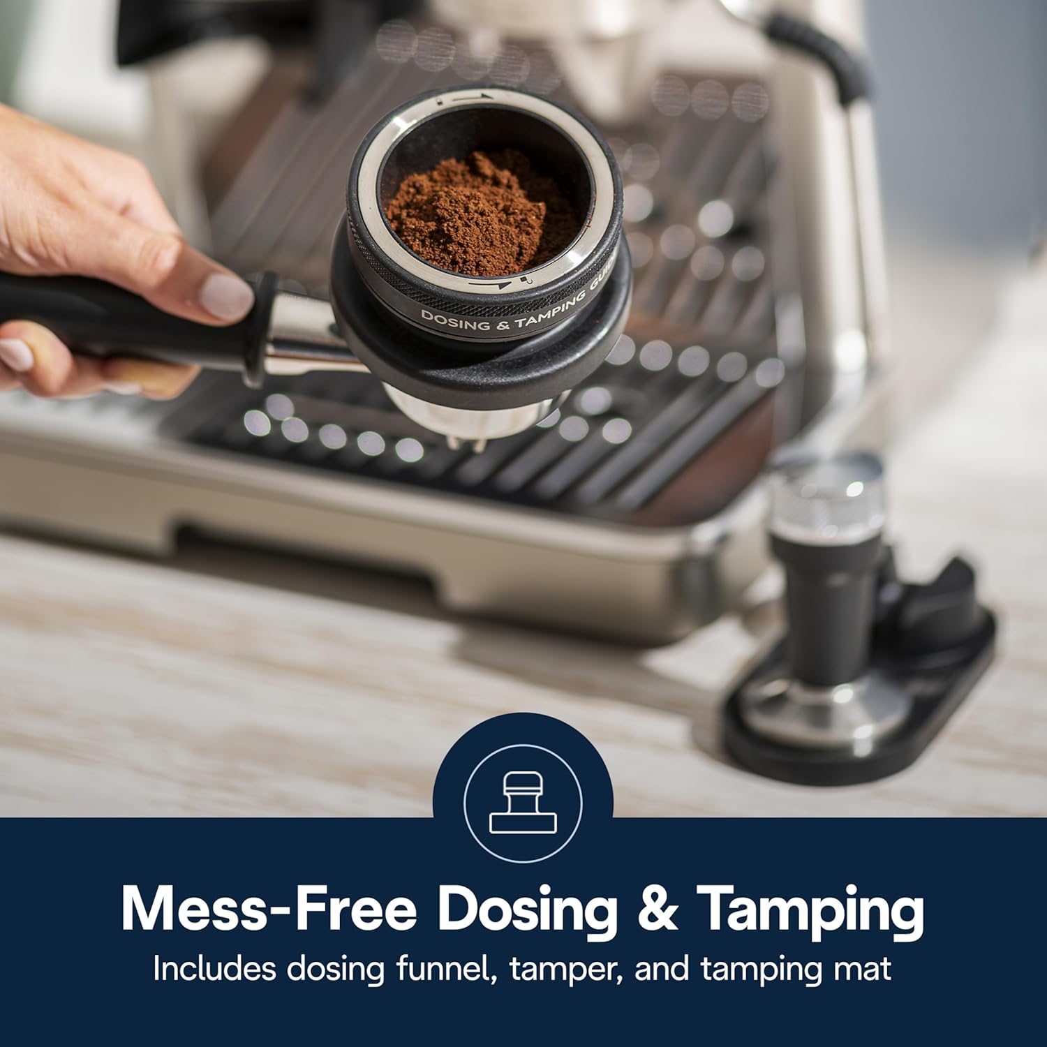 BARISTA KIT. The professional barista toolkit makes your experience mess-free and easier than ever with the dosing and tamping guide and tamping mat. With these tools, applying the right pressure on each grind is easier than ever for consistent extraction results, every time.