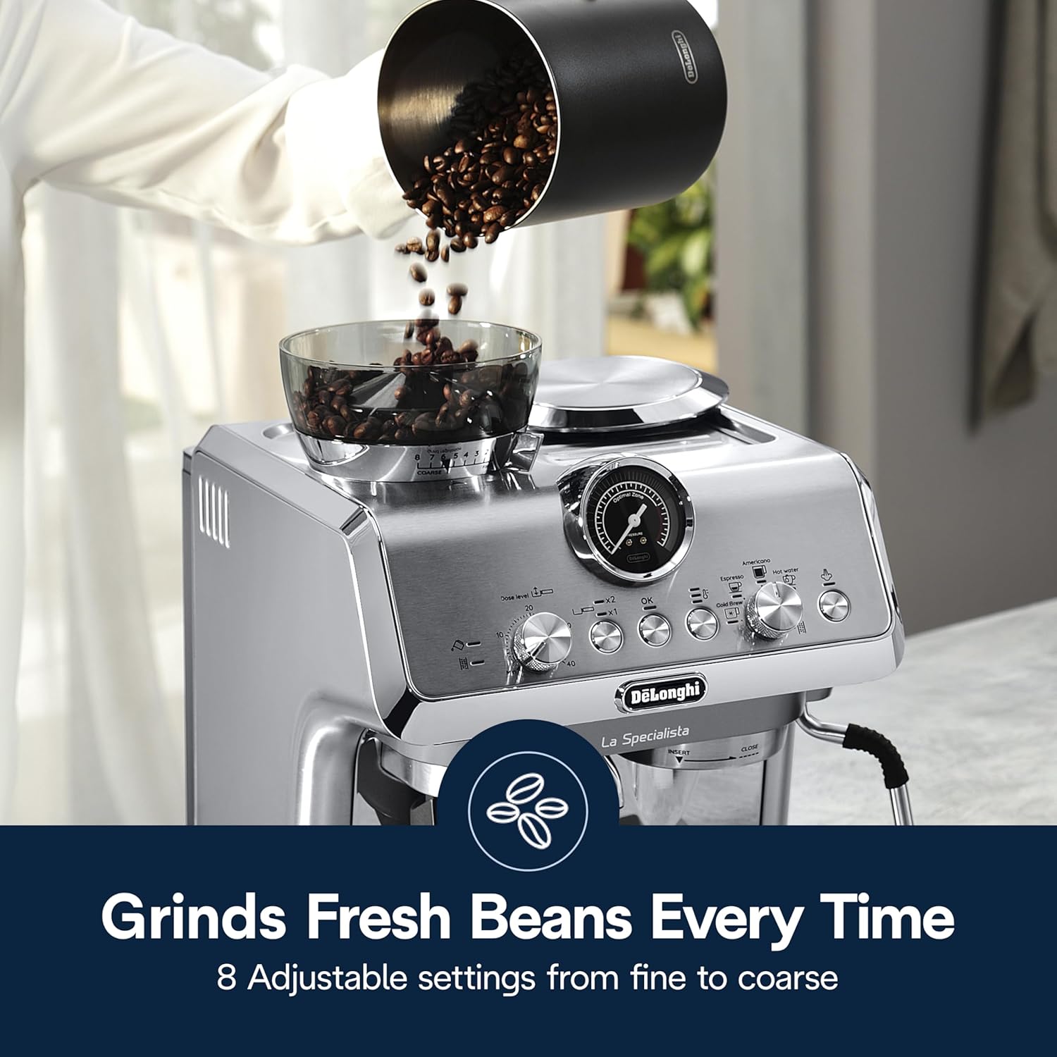 De’Longhi La Specialista Arte Evo Espresso Machine – Compact Cold Brew Coffee Maker with Grinder, Milk Steam Wand/Frother & Tamping Tools – Home Barista Kit for Lattes, Cappuccinos, Iced Coffee