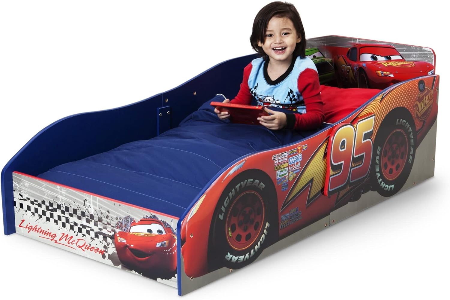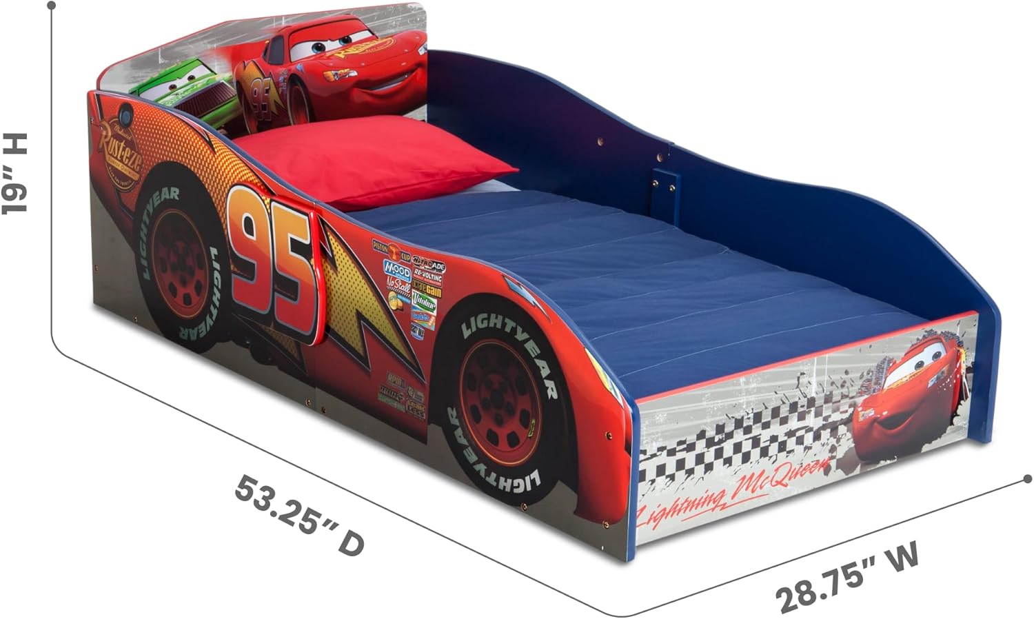 Delta Children Cars Wood Toddler Bed is JPMA certified Petal to the Metal with Lightning McQueen in this newly designed Cars Wood Toddler Bed. The toddler bed is designed to be just like Lightning Mcqueen’s own speedy race car embracing a friendly and fun way to transition your child from a crib to Toddler Bed. The Disney Pixar Cars Wood Toddler Bed also features a durable wood construction to ensure both safe sleeping and comfortability. Meets all JPMA safety standards. Some assembly required.