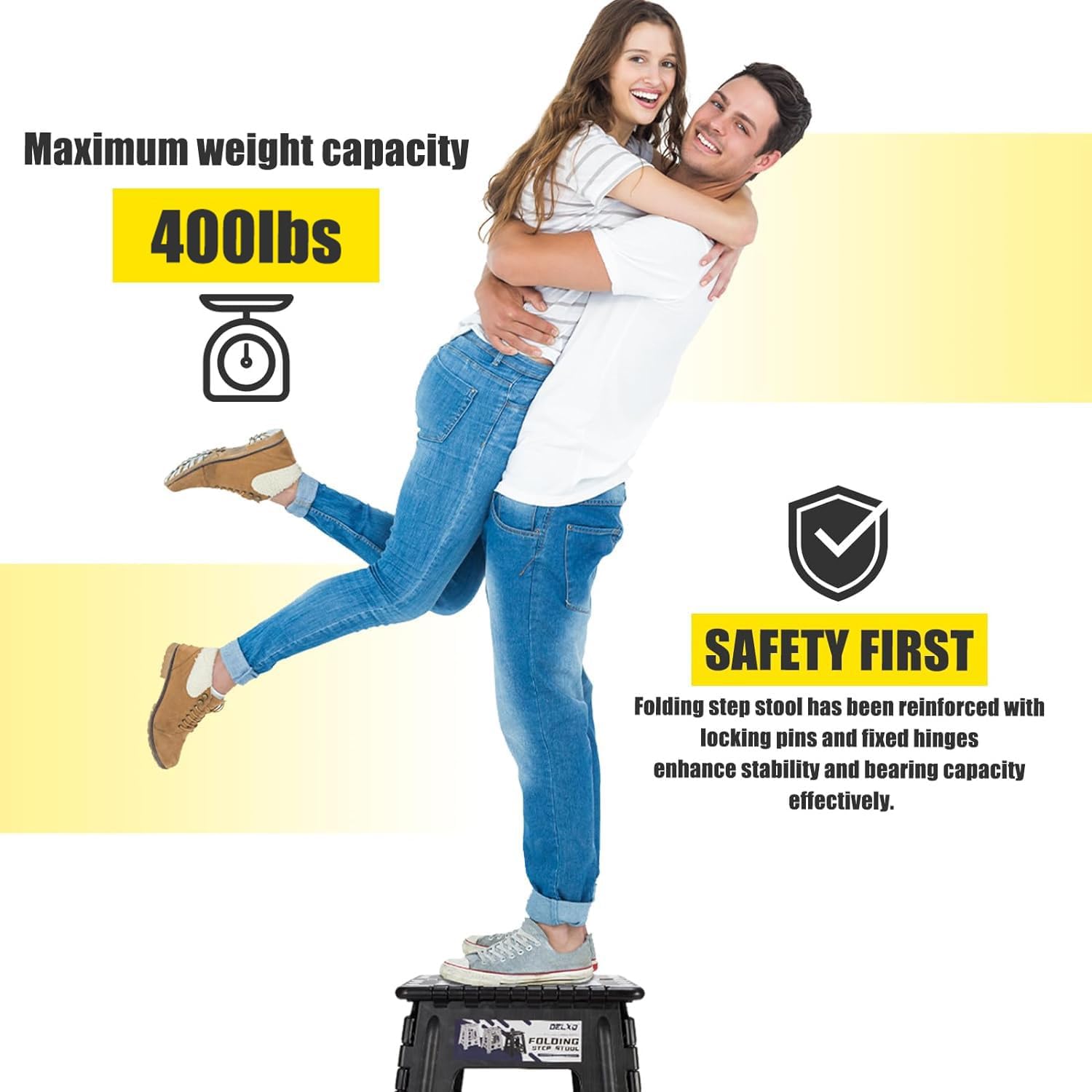 Strong & Sturdy Step Stool: The portable folding stool supports up to 400 lbs, making it sturdy enough for adults. To ensure even weight distribution and avoid damage, stand with both feet firmly on the one-step stool