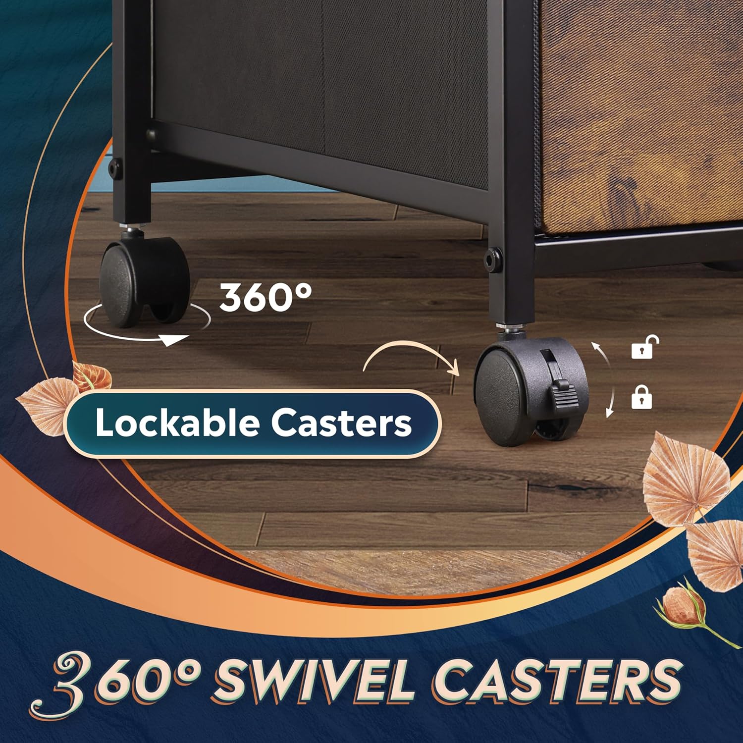 Easy to Move: Rolling on 4 wheels, this mobile file cabinet can fix or move around your home office freely. Built-in brakes on front 2 casters to keep it in position and add stability. Unique fabric drawer design makes it only weigh 22 lbs. and light to move.