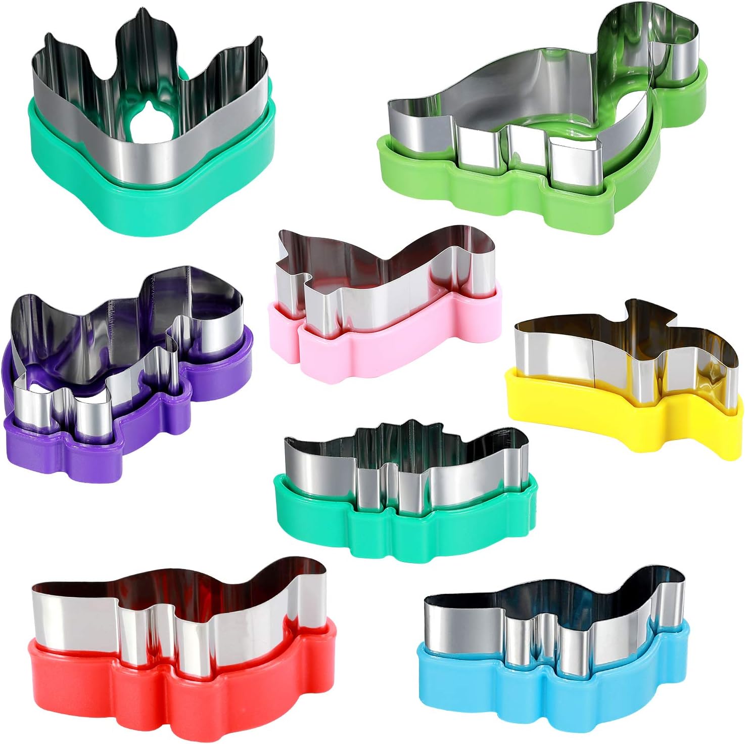 Dinosaur Cookie Cutters Set – Stainless Steel Shaped Cookie Candy Food Cutters Molds for DIY, Kitchen, Baking, Kids Dinosaur Theme Birthday Party Supplies Favors (8pack)