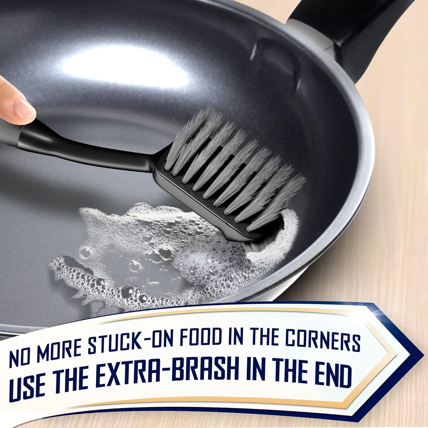 The frisky bristles remove dirt from the crustiest dishes really fast without any signs of scratches or surface damage.