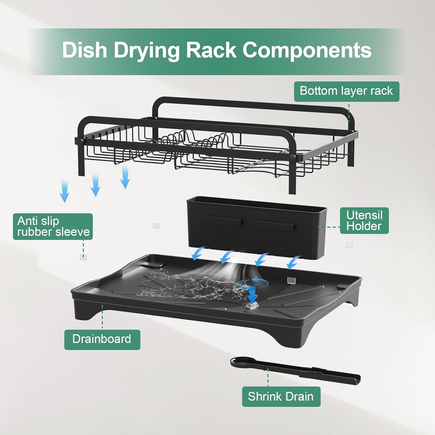 Easy to clean and maintain:HOMEAILIE Dish Drying Rack fully detachable design allows you to remove and rinse all parts under the tap