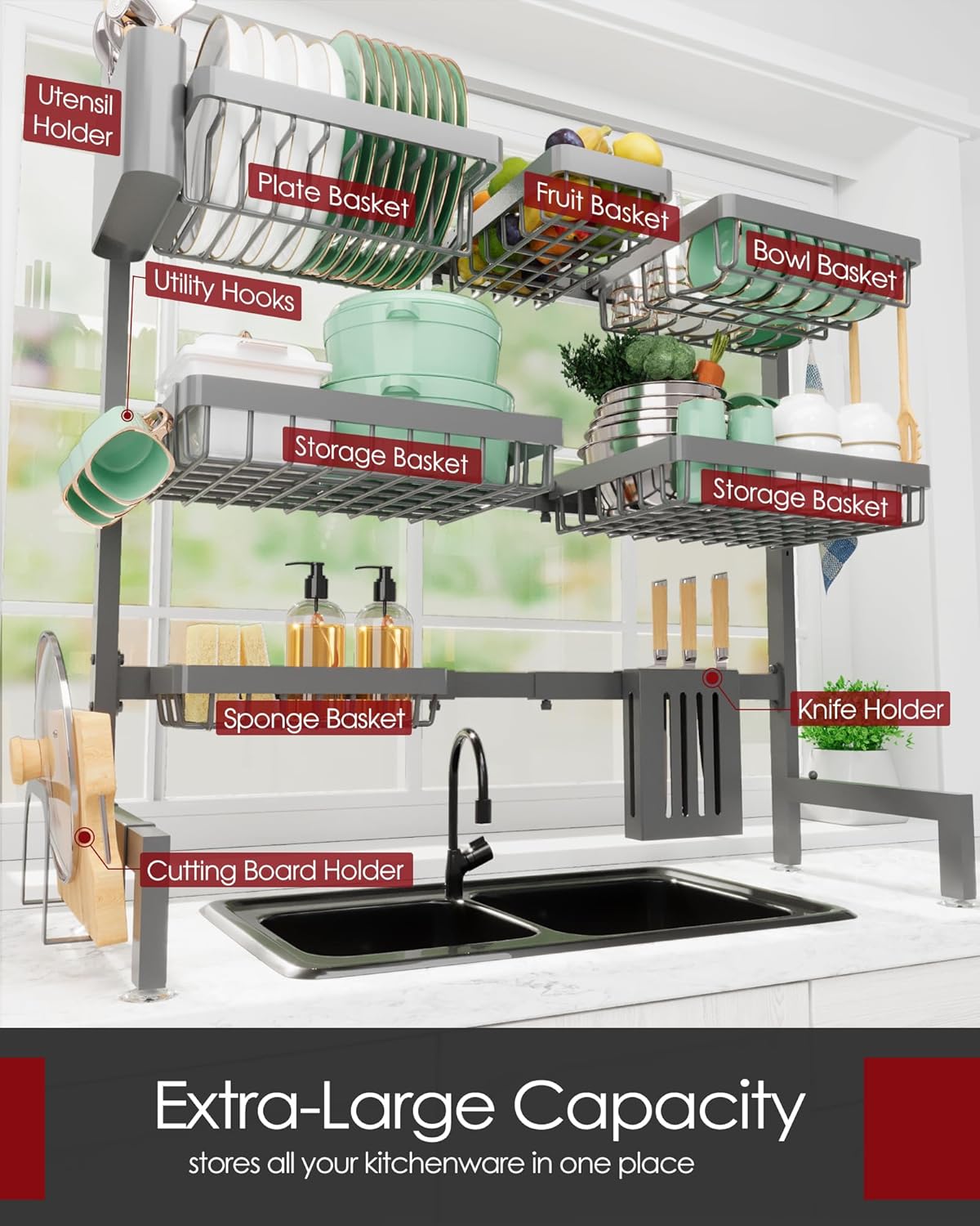 EASY TO SET UP: This over-the-sink drying rack features a clear and straightforward design, making assembly a breeze. All necessary tools and a detailed user manual are included, so you can quickly set it up without hassle. Enjoy an organized kitchen sooner, free from the frustration of complicated assembly.