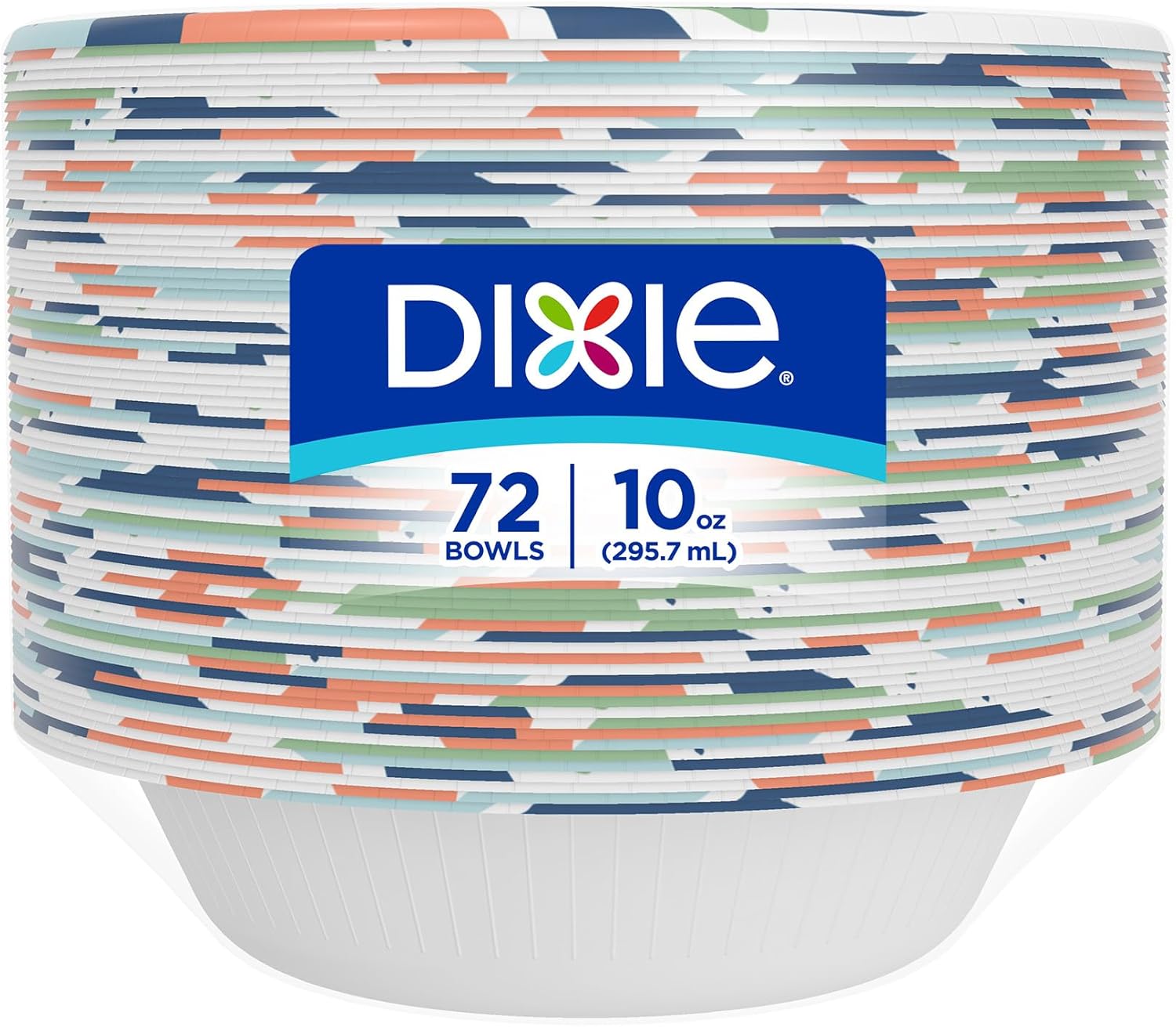 Dixie Small Paper Bowls, 10 Oz, 72 Count, Microwave-Safe, Soak-Proof, Disposable Bowls Great For Snacks, Dessert, And Light Lunch Meals