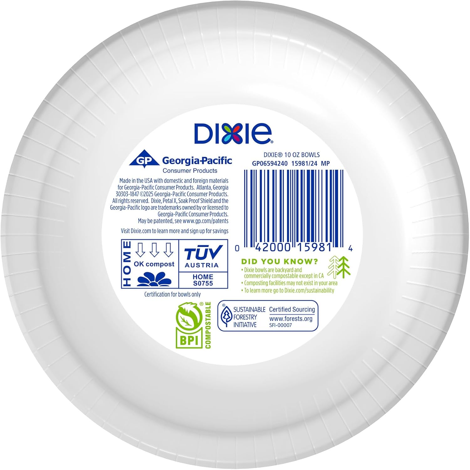Responsibly made—Dixie 10 oz. paper bowls deliver the same strength and performance, but with the added benefit of being compostable except in California.