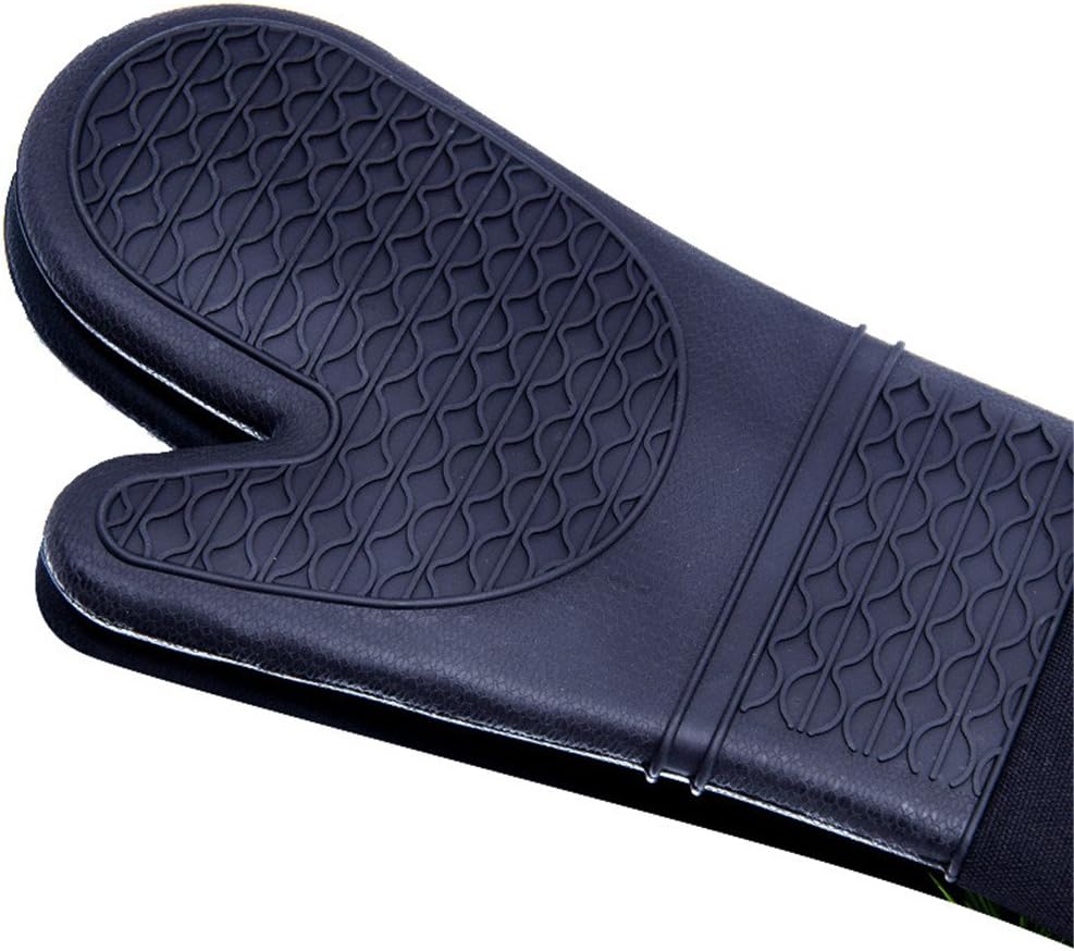 DoMii Extra Long Silicone Oven Mitts Heavy Duty Commercial Grade Oven Mitts Heat Resistant BBQ Gloves with Quilted Cotton Lining 2 Pack