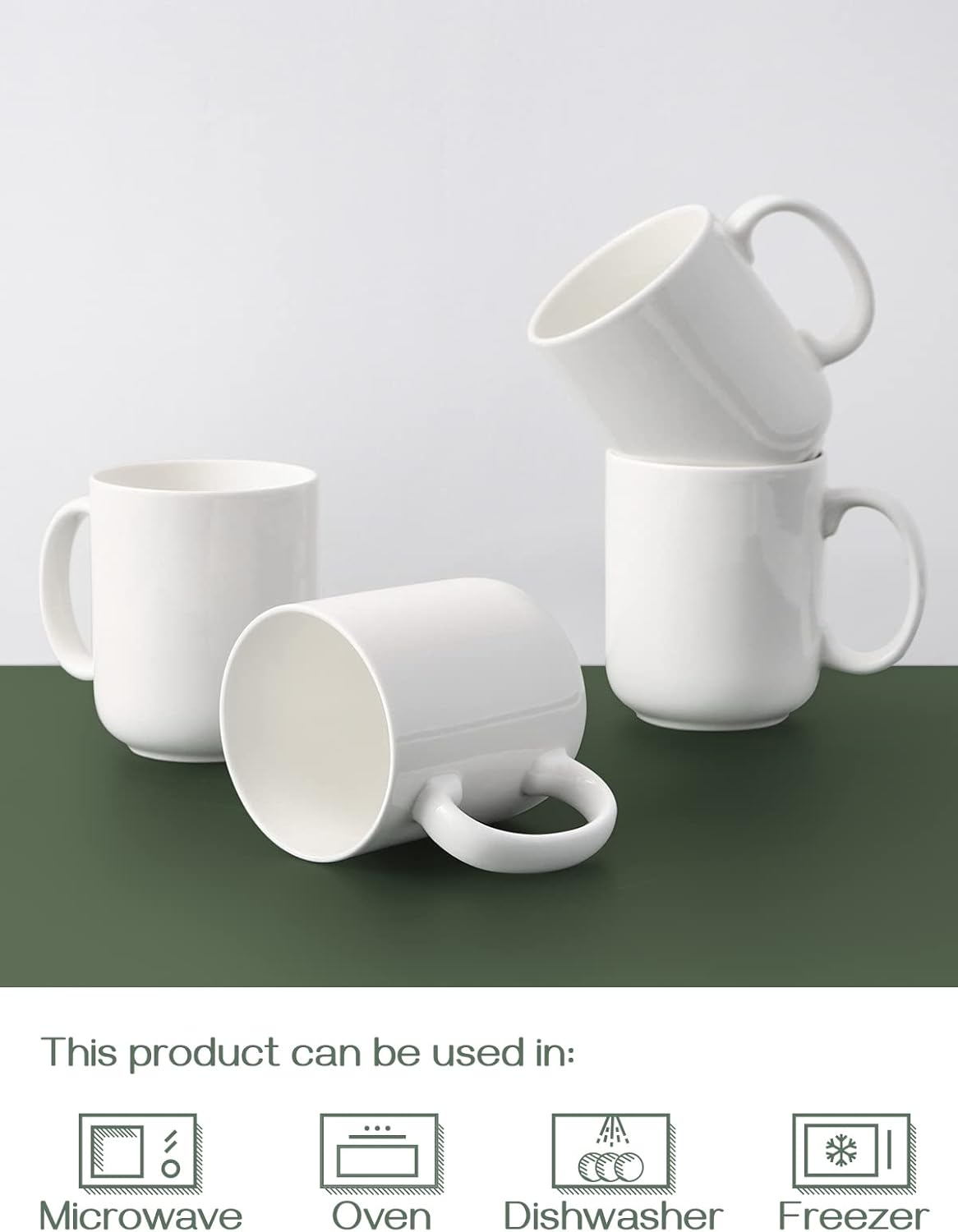 20 OZ Large Coffee Mugs – These white large coffee mugs are bigger than other normal coffee mugs. Therefore, the larger capacity of our large coffee mug satisfies your coffee with extra room for coffee or milk. Enjoy nice soup, and tea with our oversize coffee mugs.