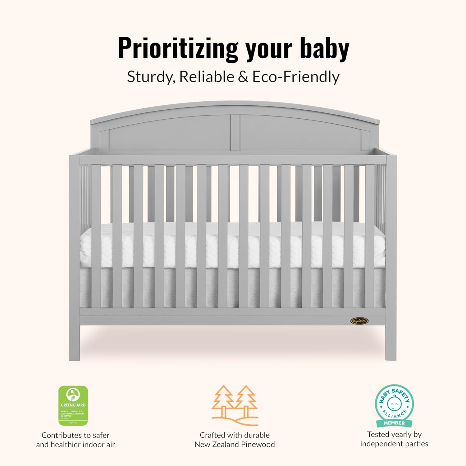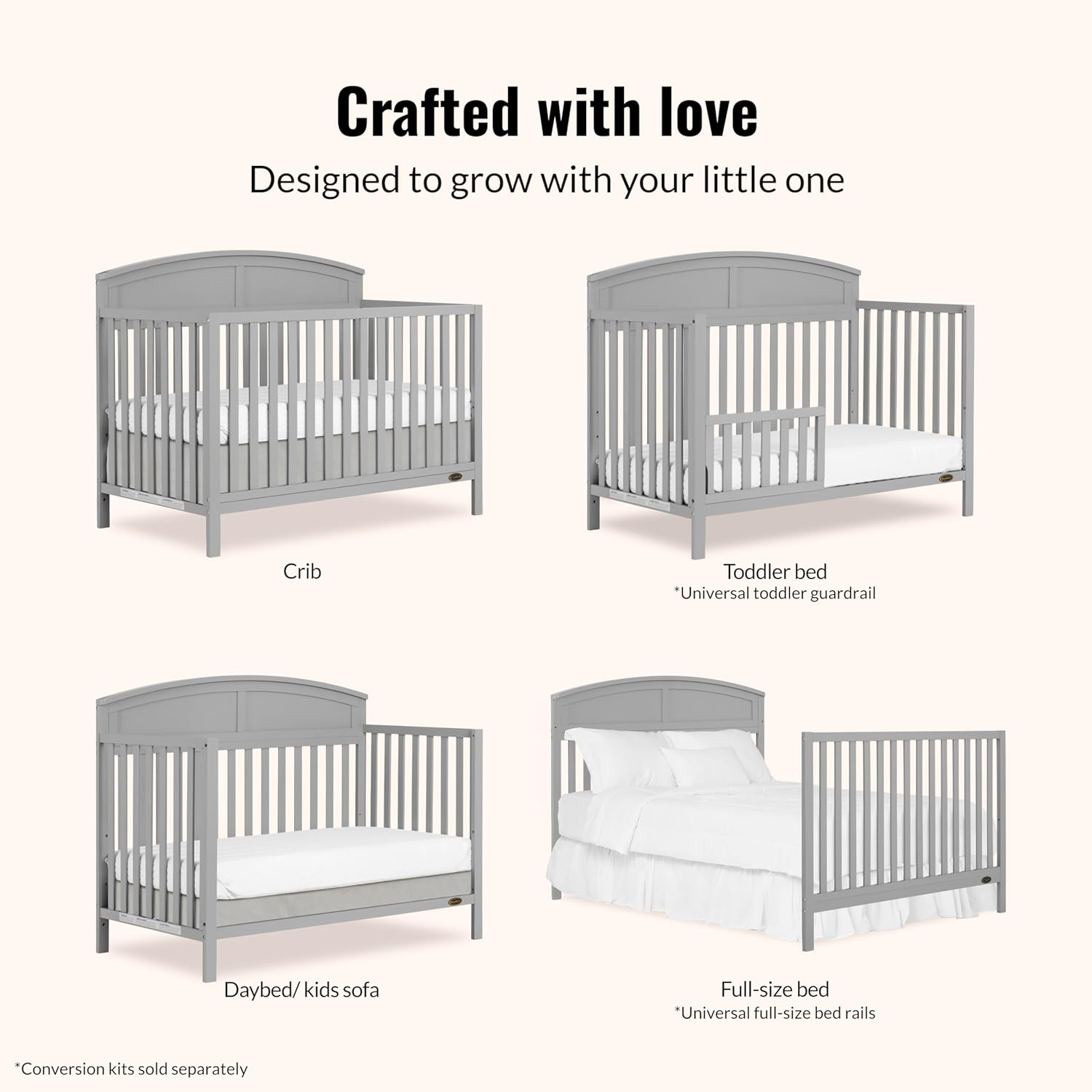 Dream On Me Storybrooke 5-in-1 Convertible Full-Size Baby Crib in Pebble Grey, GreenGuard Gold & JPMA, Convert to Toddler, Day & Full-Size Bed, Sustainable Pinewood, 3 Mattress Heights